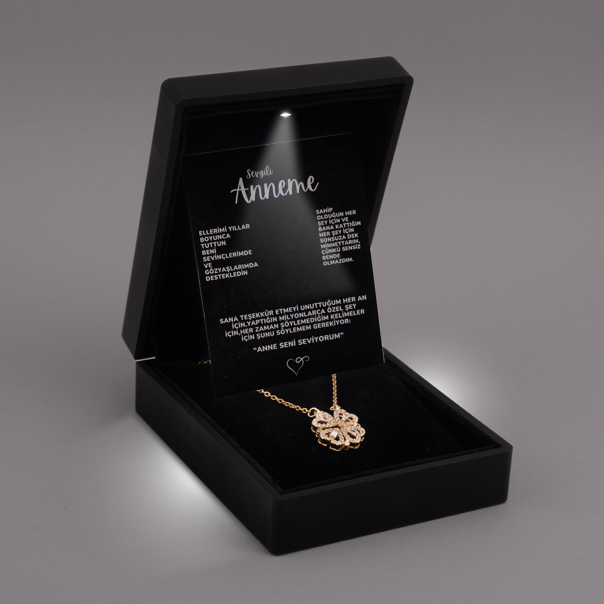 ''Anneme'' Yonca Kolye Notlu ve Hediye Kutulu