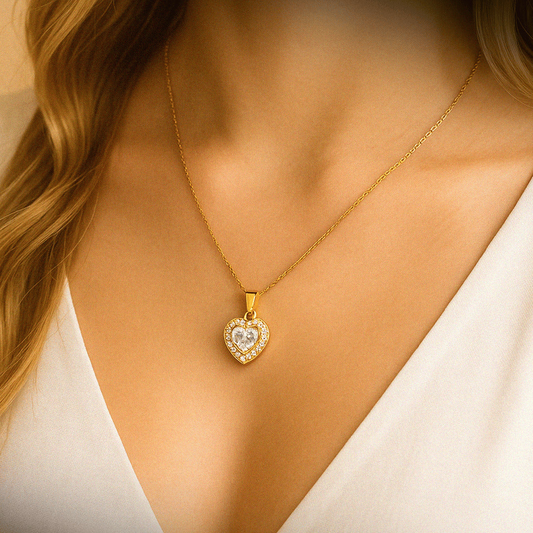 “Kadınıma” Altın Kalp Taşlı Kolye Anlamlı Notlu ve Kutulu