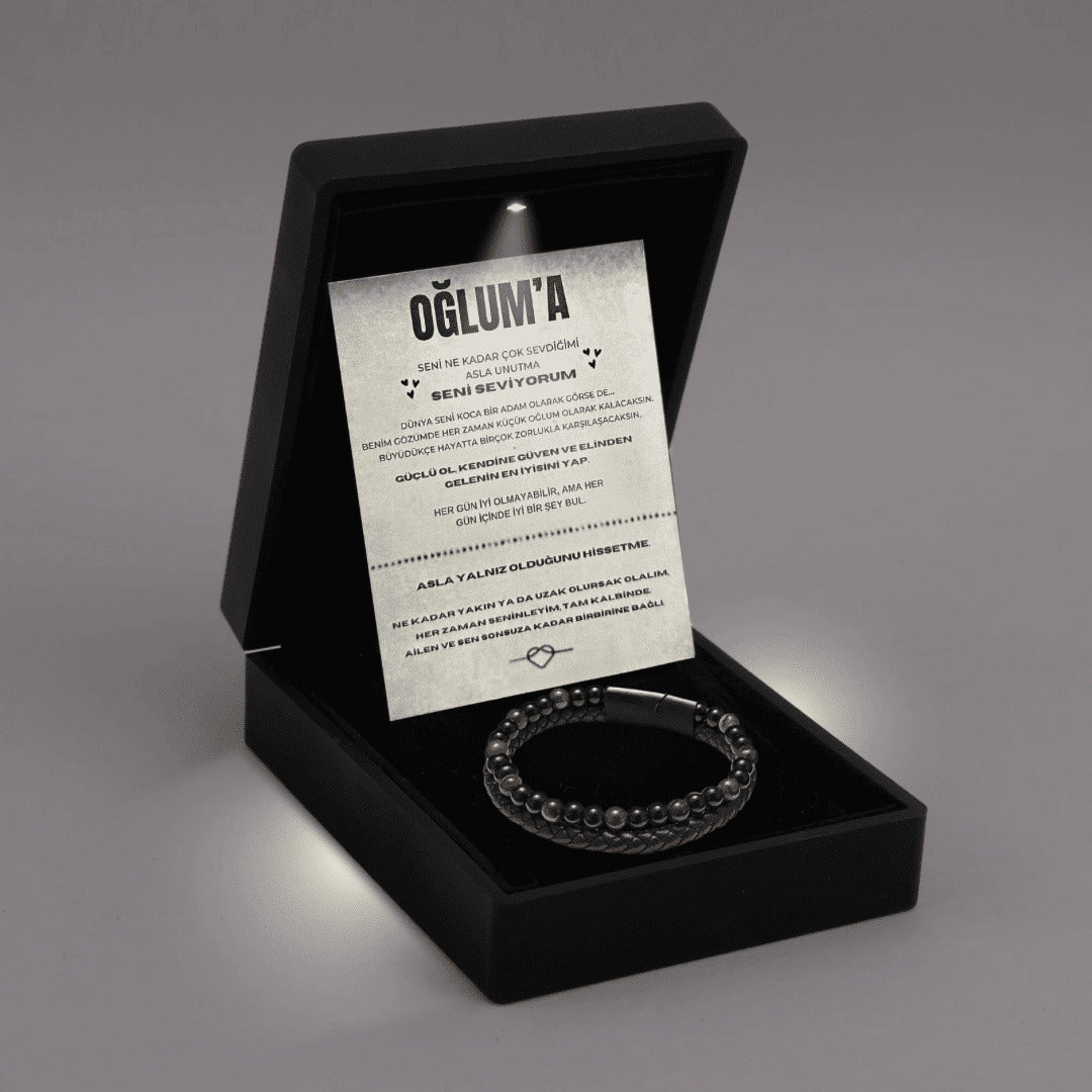 ''Oğluma Kaplan Gözü Koruma''Bileklik Notlu ve Hediye Kutulu