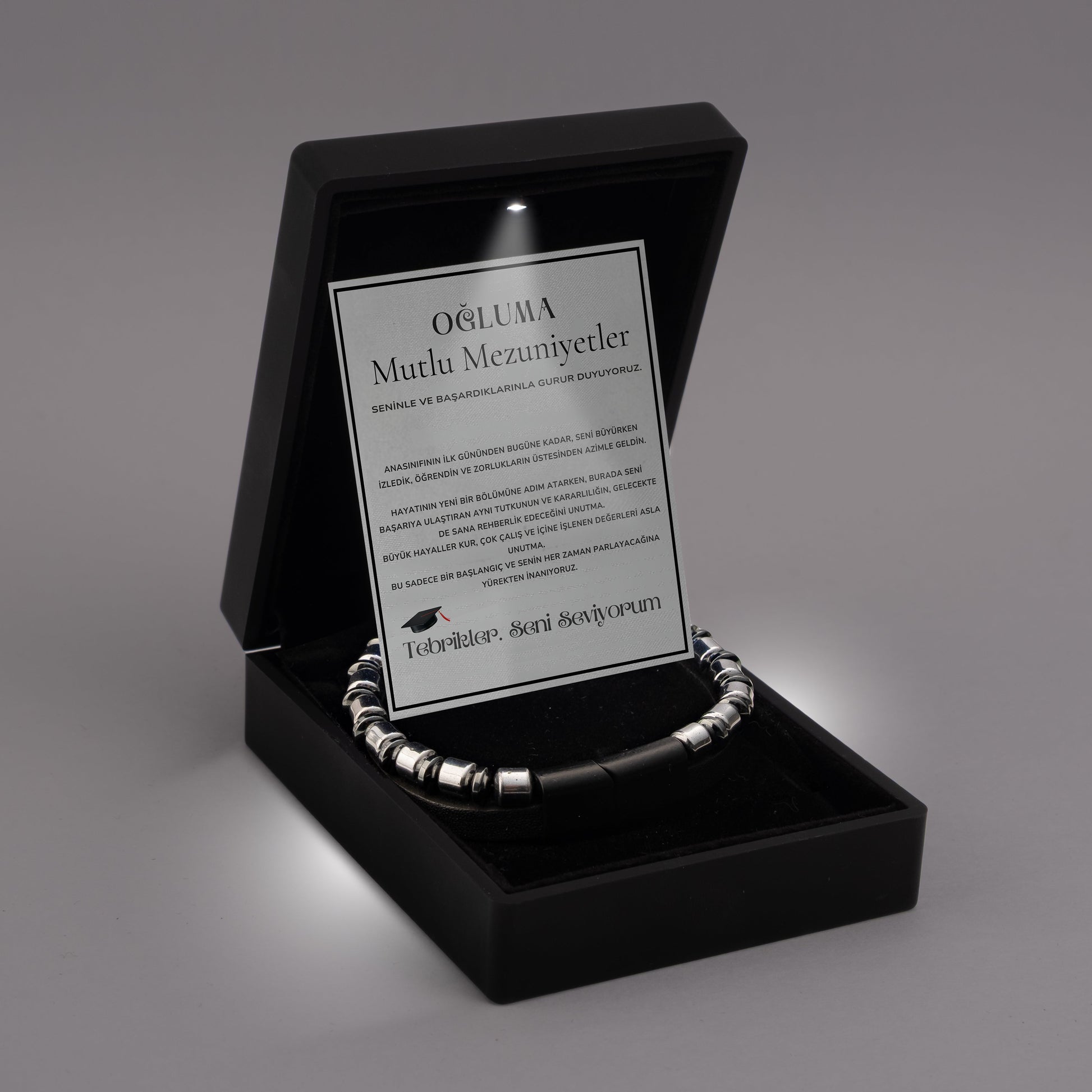 ''Oğluma Mezuniyet'' Magneto Bileklik Notlu ve Hediye Kutulu