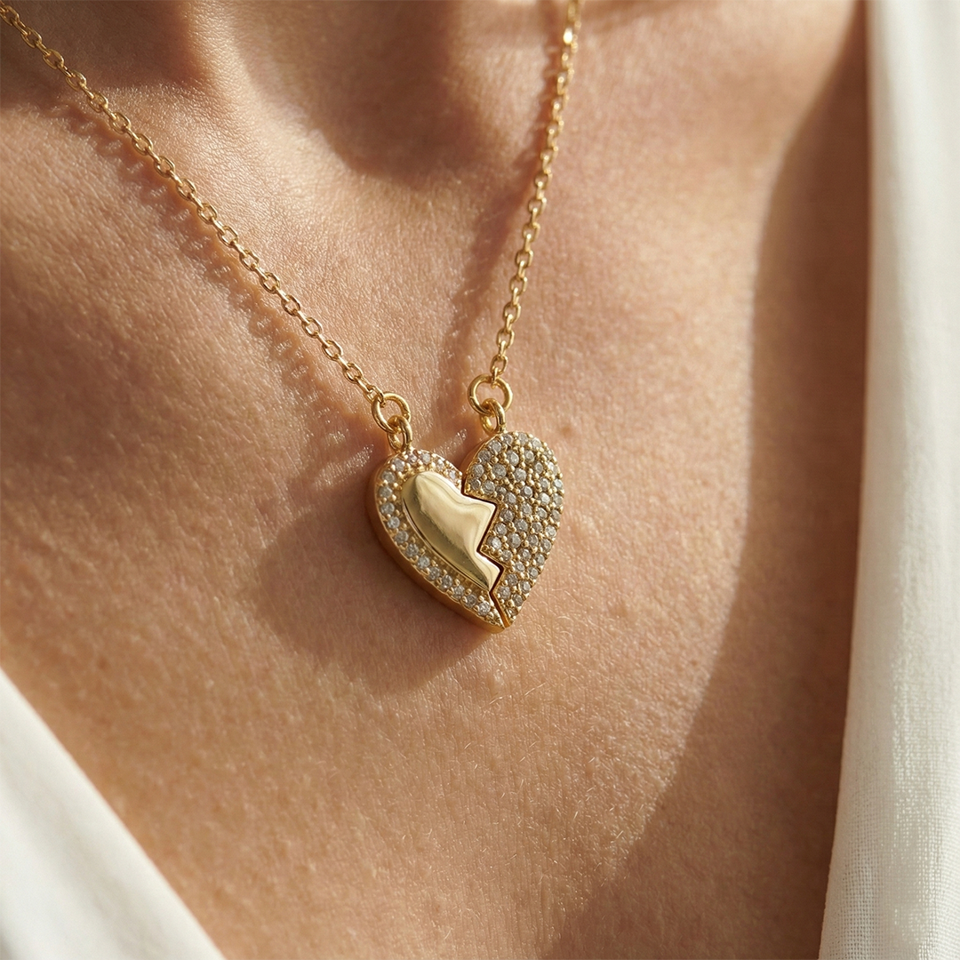"Kalpten Gelen Dokunuş" kolyemiz, 14 ayar altın kaplamasıyla ışıltısını uzun yıllar korurken, özel anlamı ile kalplere dokunur.