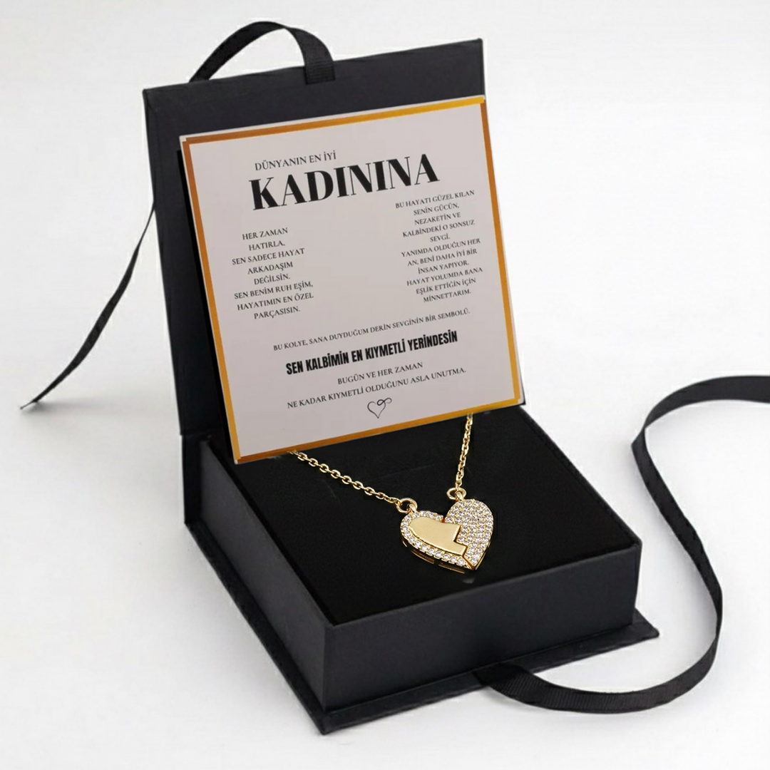 "Kadınına" Mıknatıslı Kalbim Sende Kolye Anlamlı Not ve Kutulu