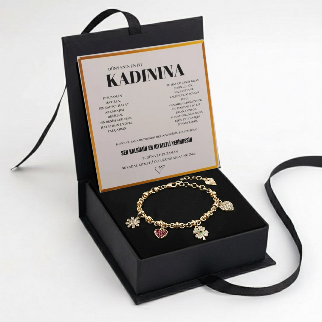 "Kadınına" Şans Temalı Bileklik Notlu ve Kutulu