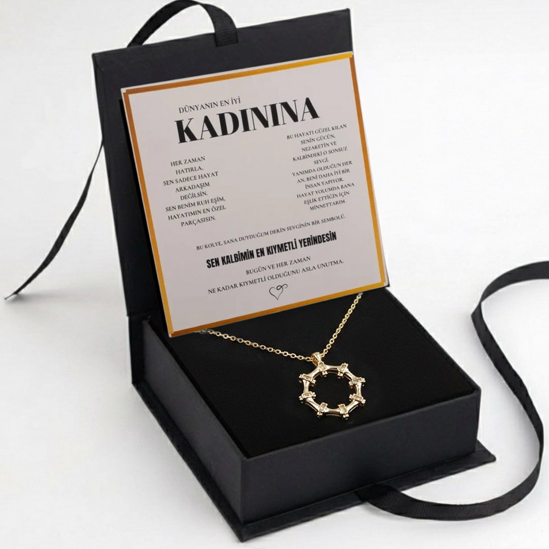 "Kadınına" yıldız çelengi Kolye Anlamlı Not ve Kutulu