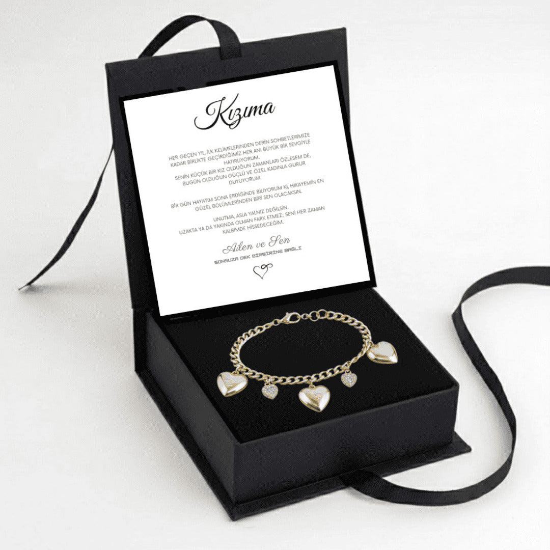 "Kızıma" Balon Kalpli, Charmlı Bileklik Anlamlı Not ve Kutulu