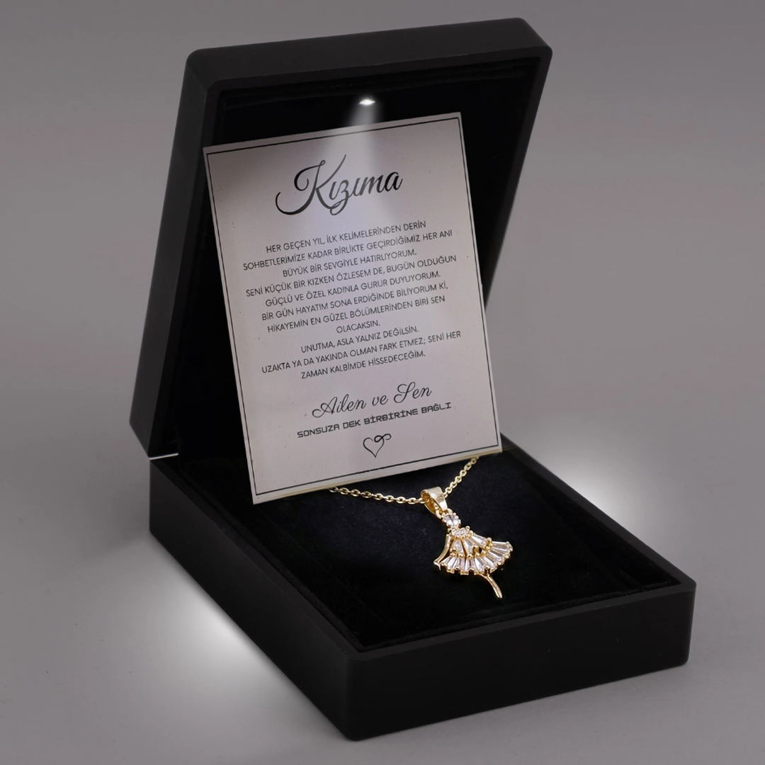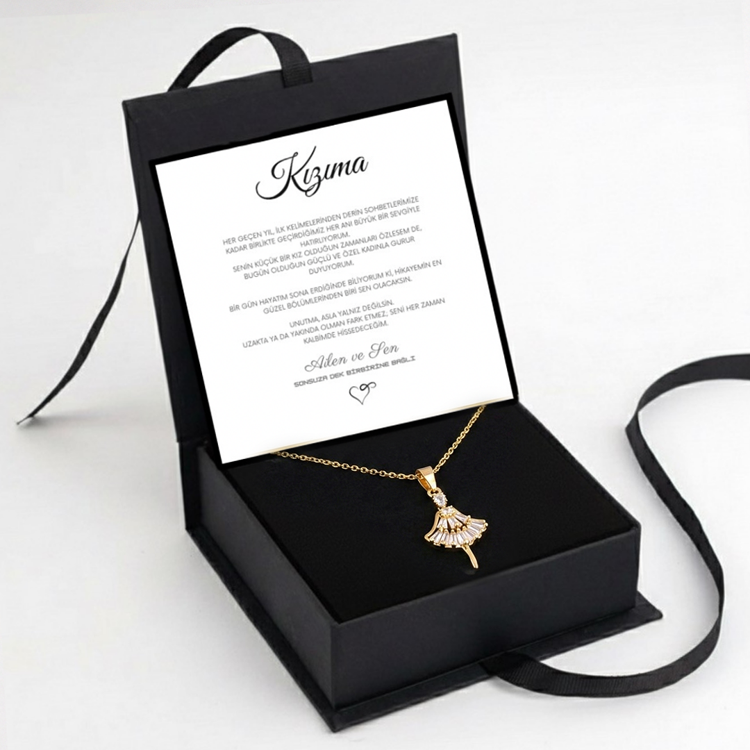 "Kızıma" elmas işlemeli balerin kolye Anlamlı Not ve Kutulu
