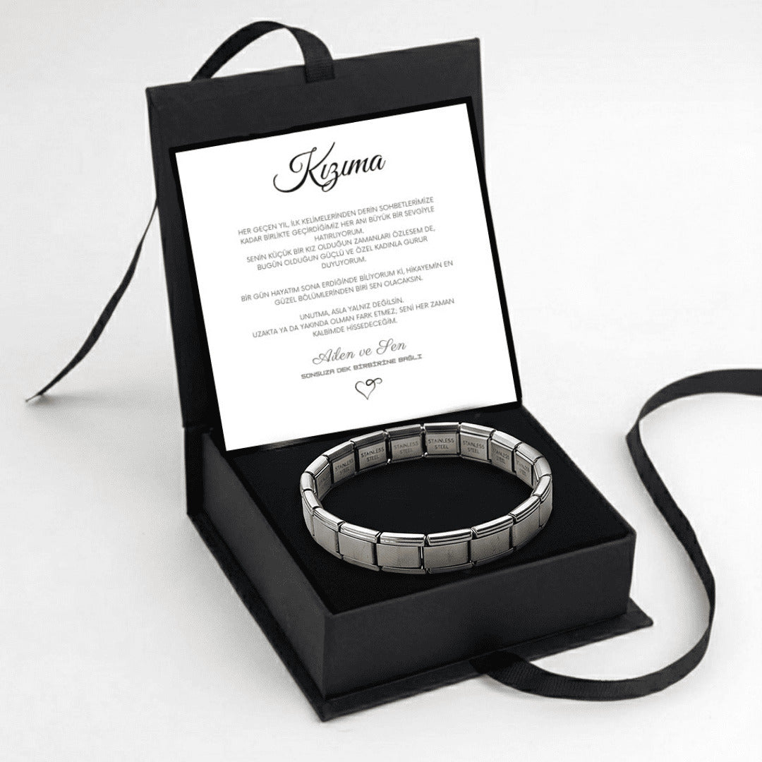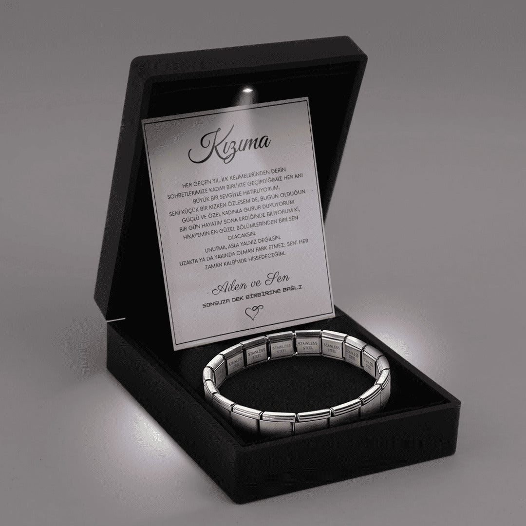 "Kızıma" Esnek Charm Bileklik Anlamlı Not ve Kutulu