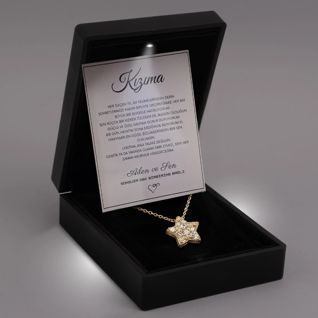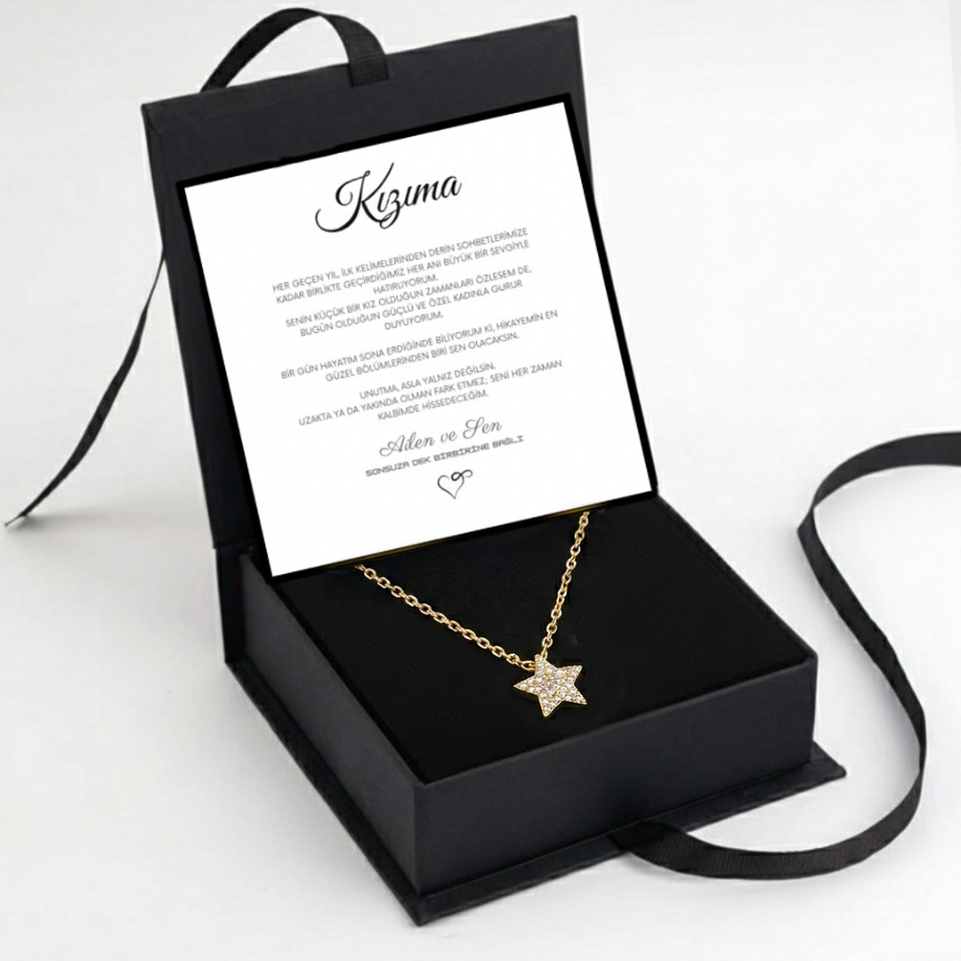 "Kızıma" Elmas İşlemeli Star Kolye Anlamlı Not ve Kutulu