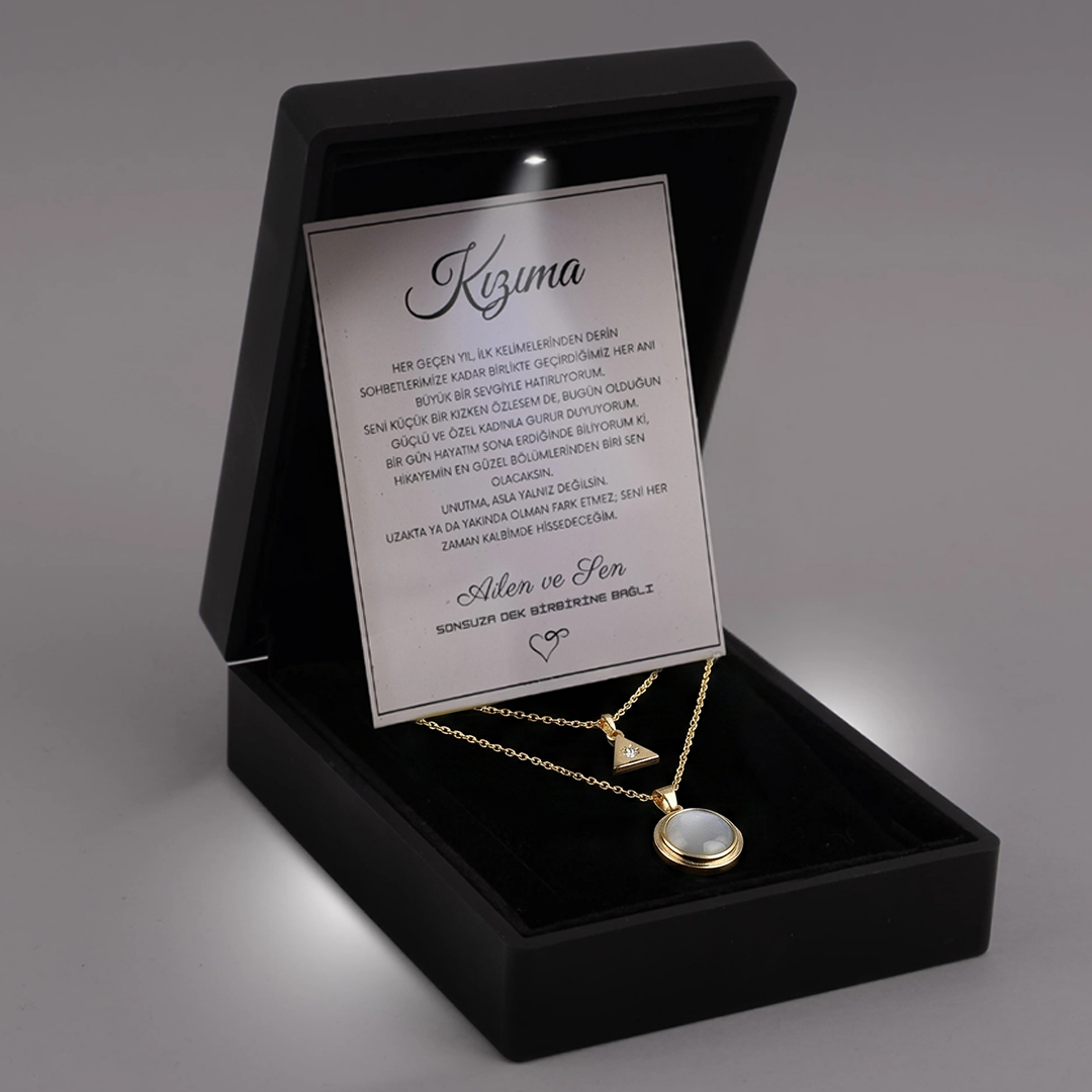 Bu kolye, eşinize ve annenize olan sevginizi en zarif haliyle anlatmanın bir yolu olacak.