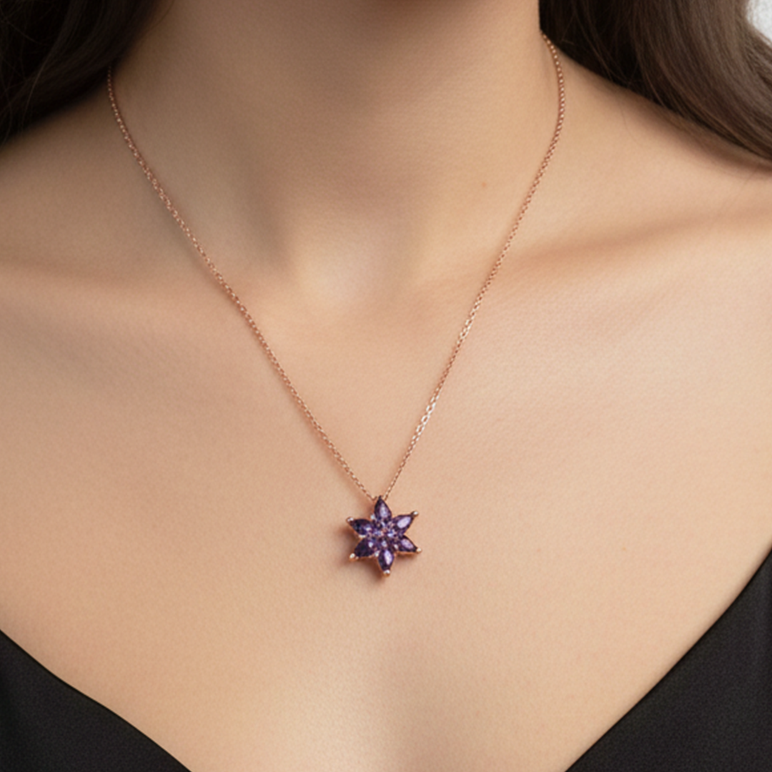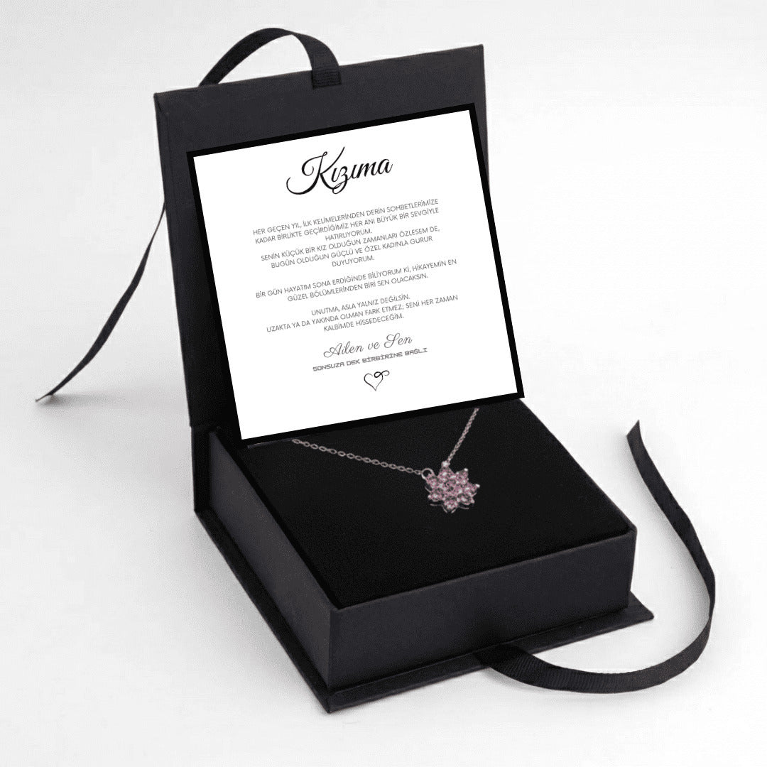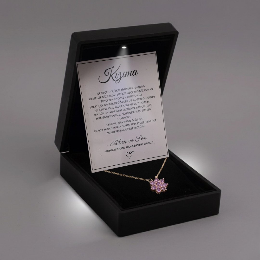 “Kızıma” Mor Yıldız Çiçeği Kolye Anlamlı Notlu ve Kutulu