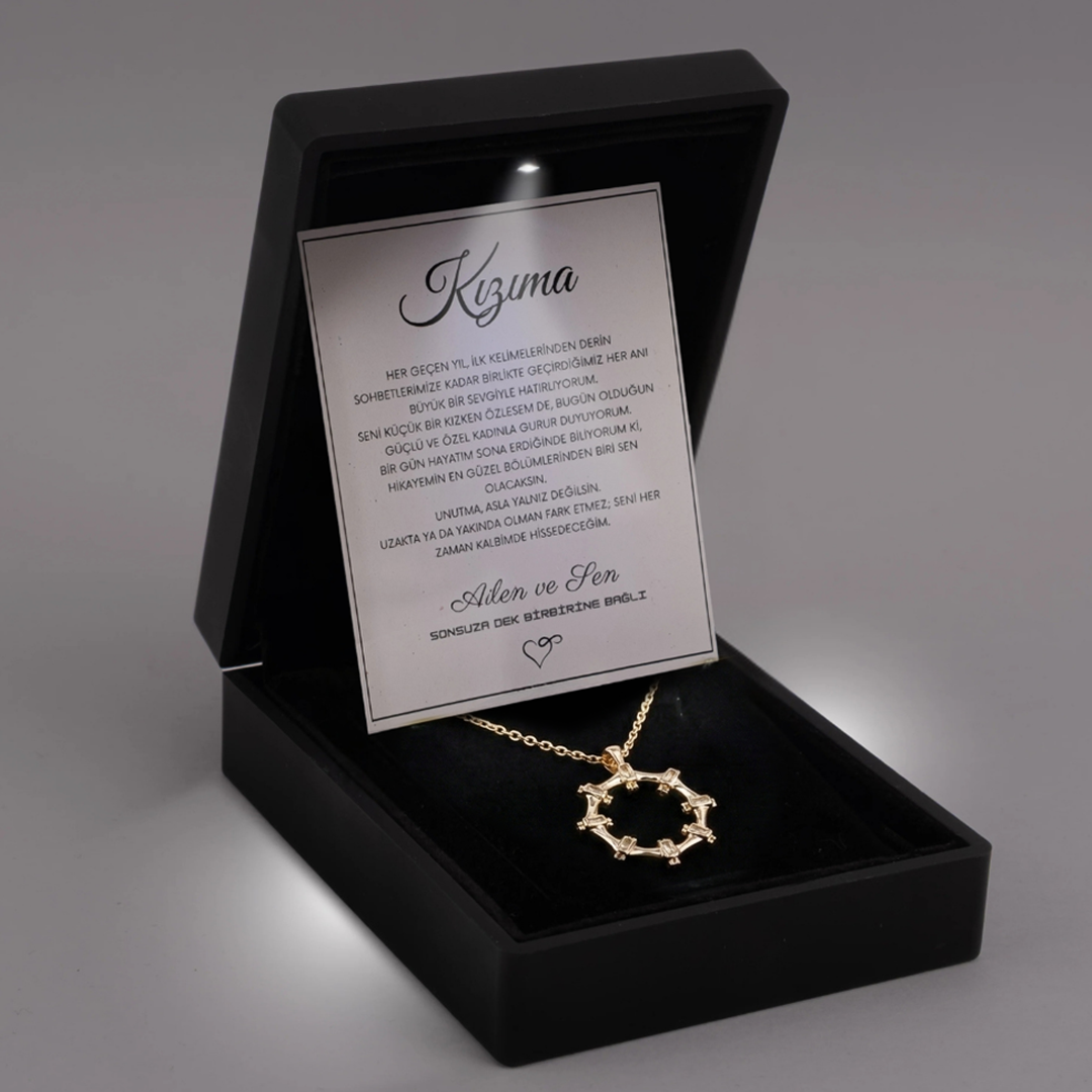 "Kızıma" yıldız çelengi kolye Anlamlı Not ve Kutulu