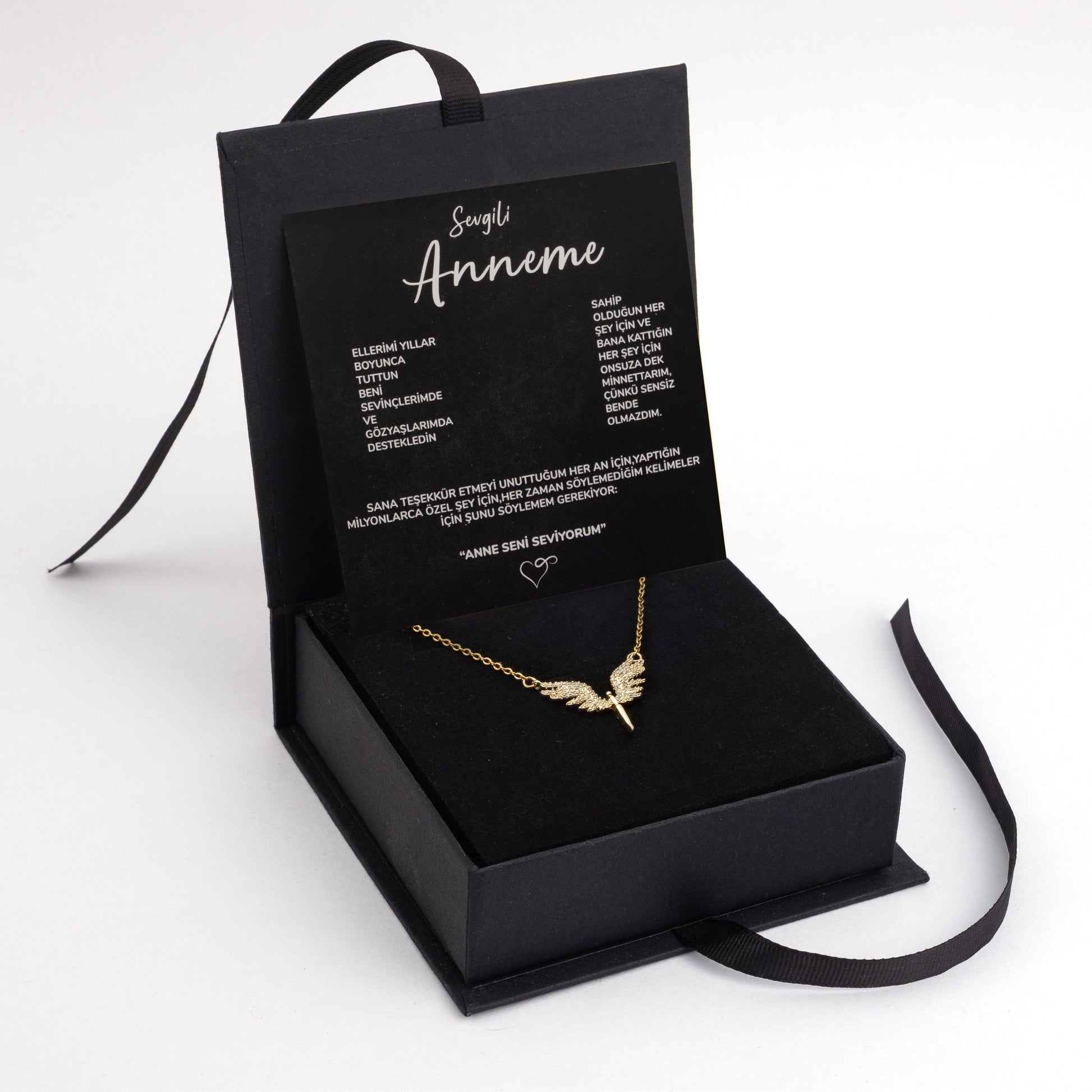 "Anneme" Melek Kolye Anlamlı Not ve Kutulu