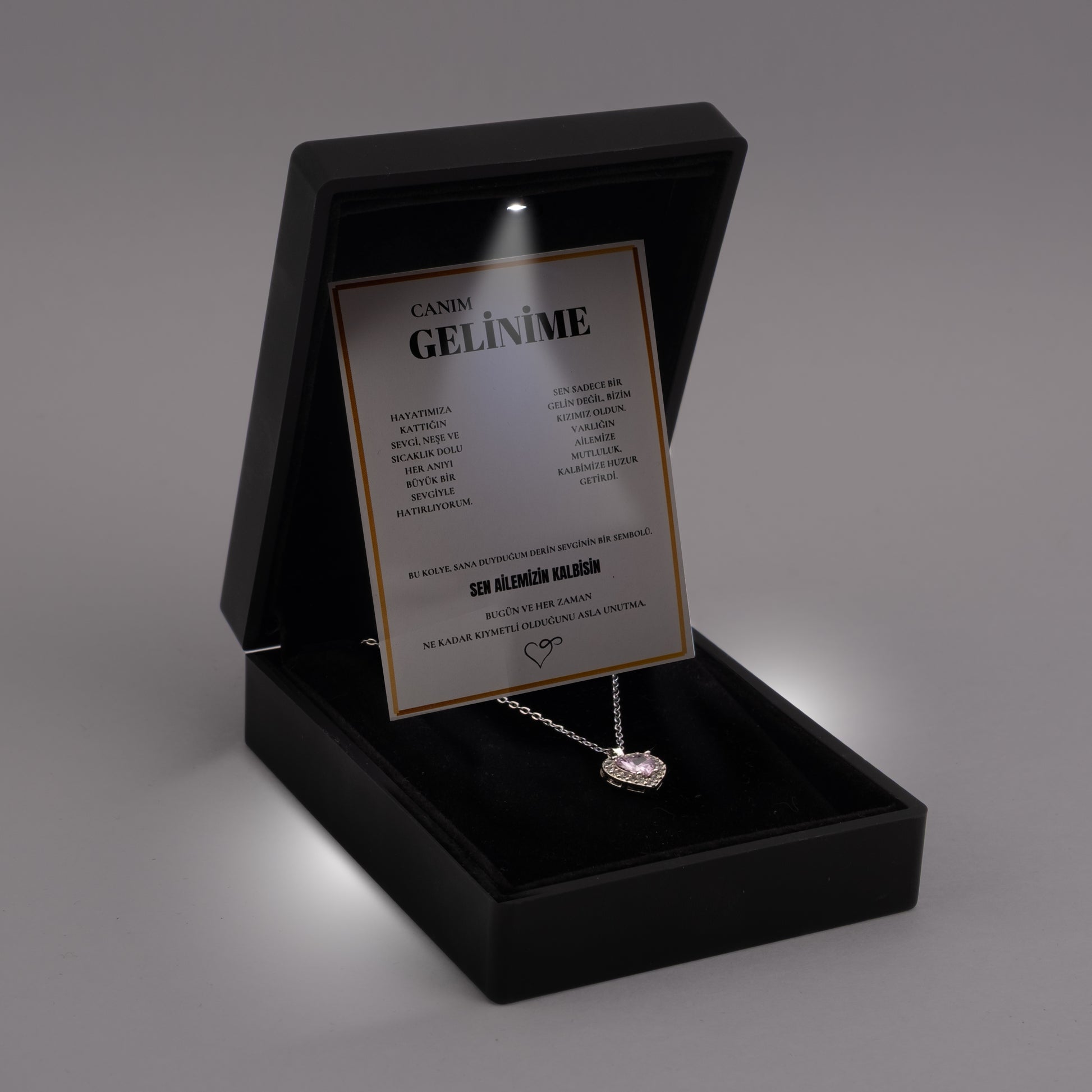 ''Gelinime'' Taşlı Kalp Kolye Notlu ve Hediye Kutulu