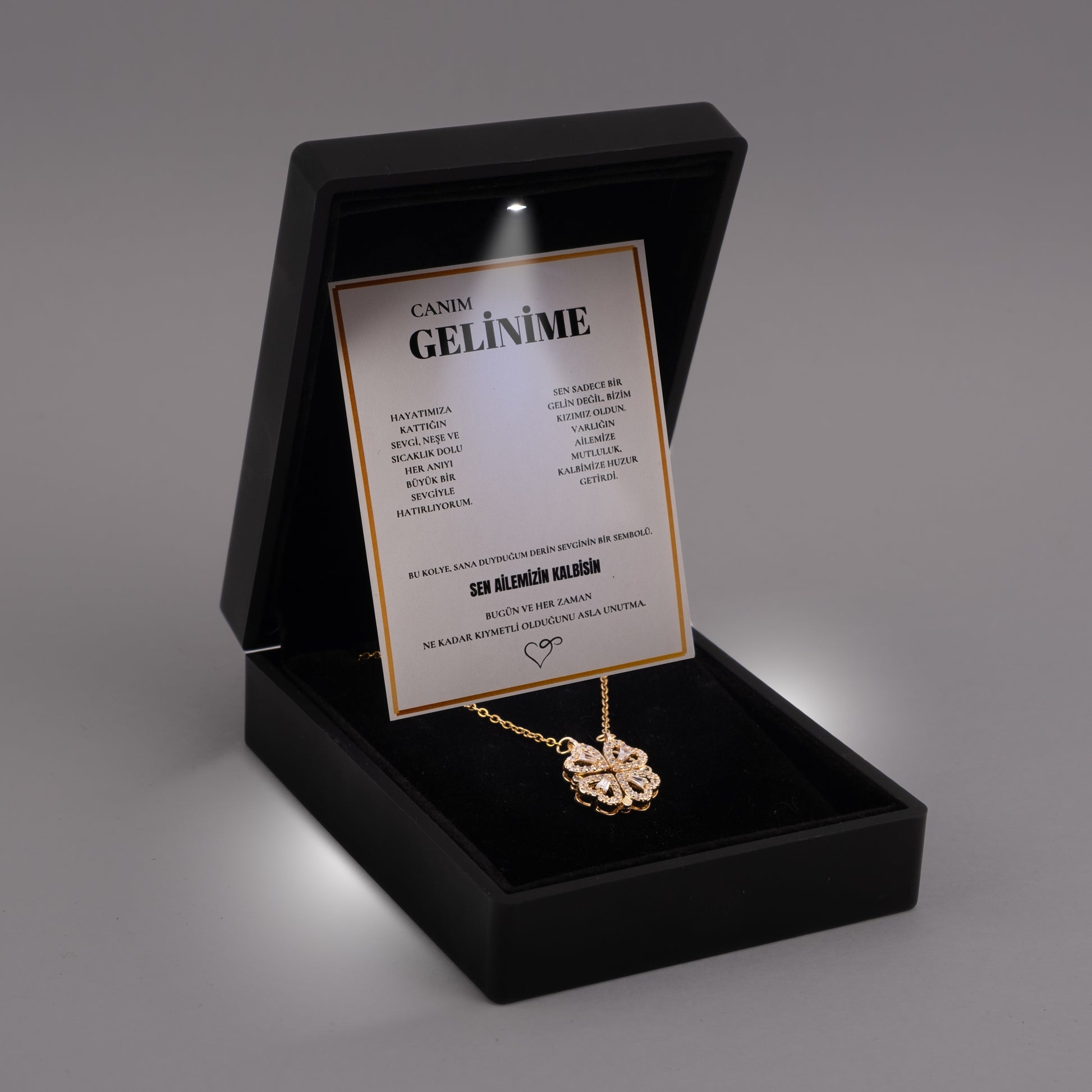 "Gelinime" Yonca Kolye Notlu ve Hediye Kutulu