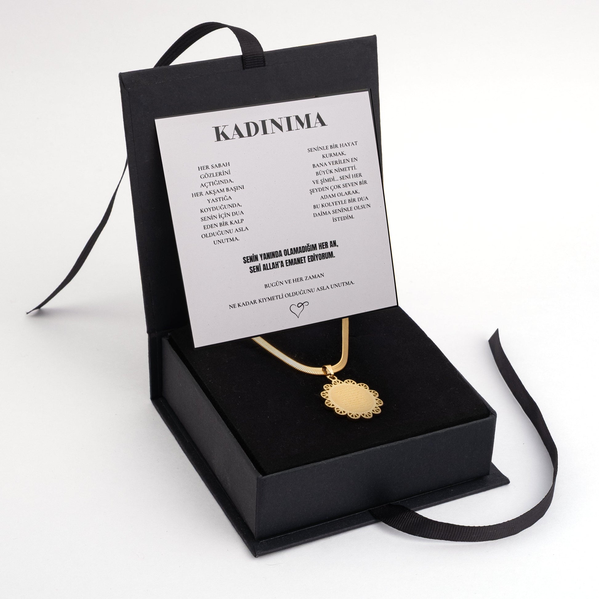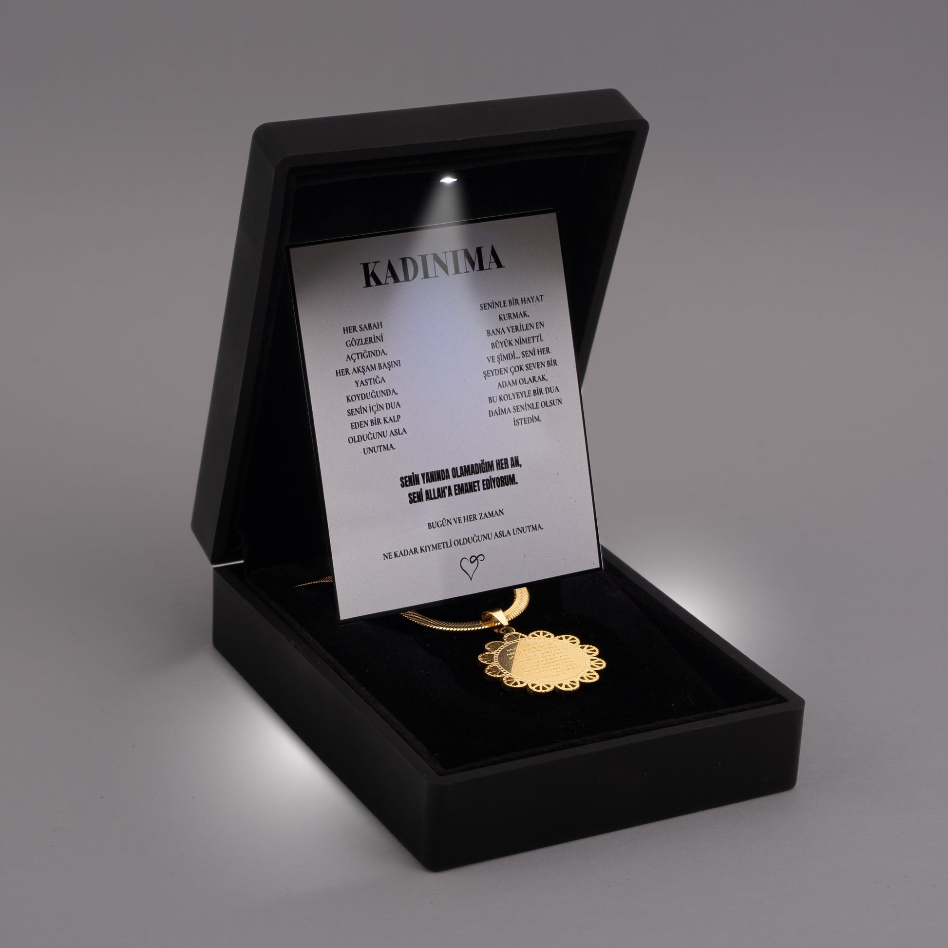 ''Kadınıma'' Dua Kolye Ayetel Kursi Anlamlı Not ve Kutulu