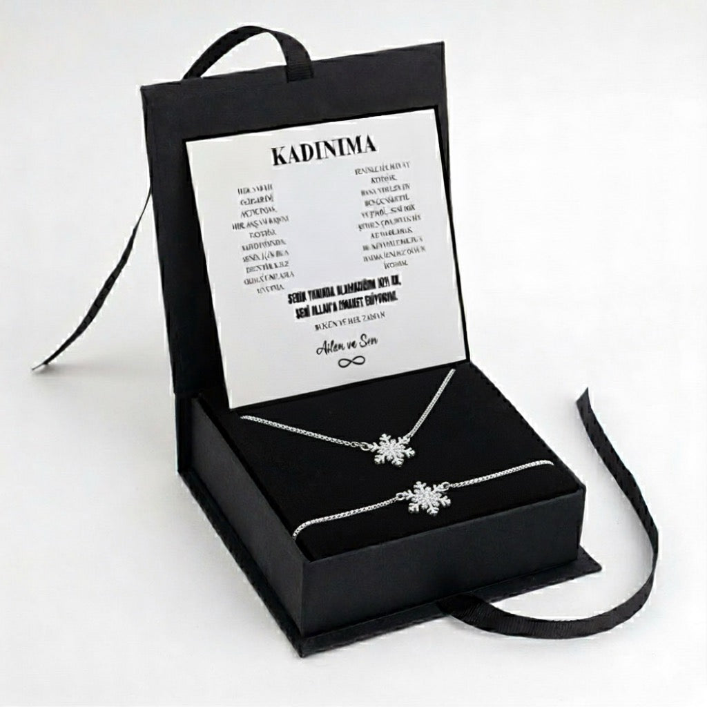 "Kadınıma" Parıltılı Kar Tanesi Kolye Anlamlı Notlu ve Kutulu