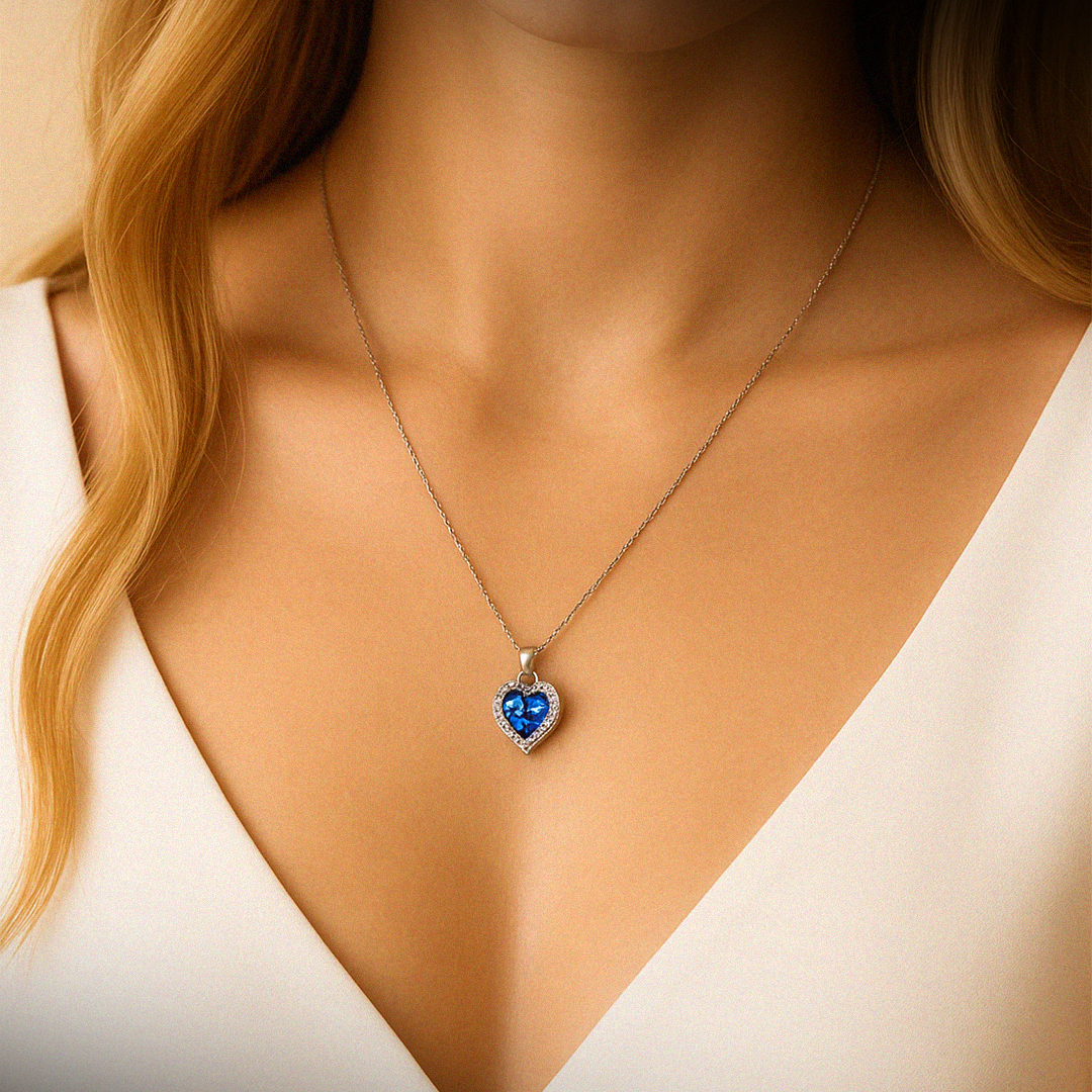 “Kadınıma” Okyanus Kalbi Mavi Taşlı Kolye Anlamlı Notlu ve Kutulu