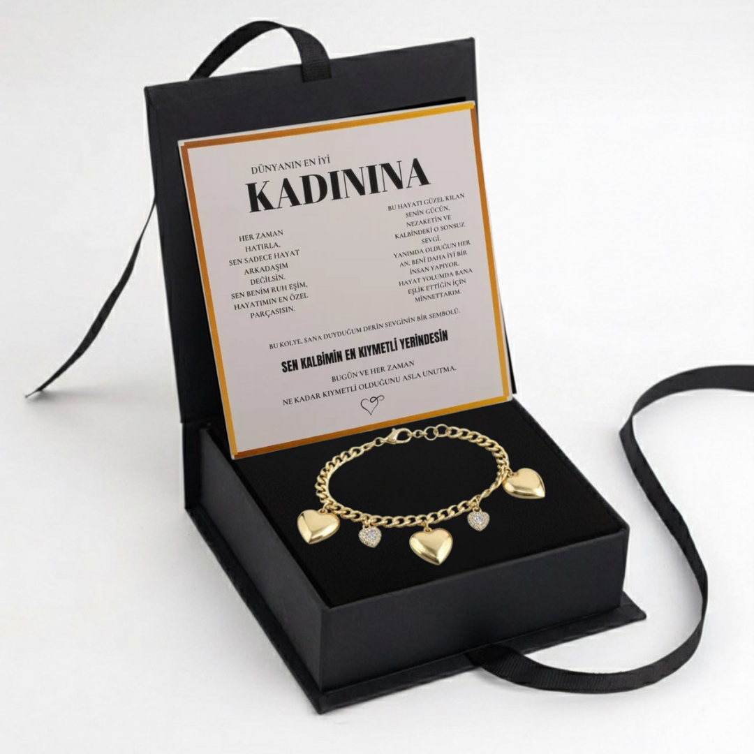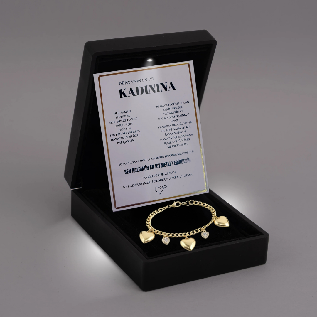 "Kadınına" Balon Kalpli, Charmlı Bileklik Notlu ve Kutulu