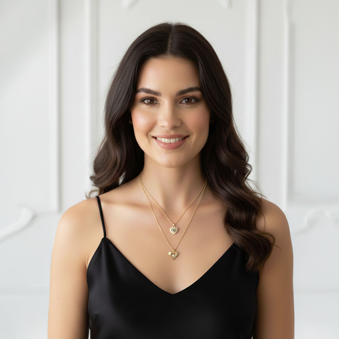 "Kalpten Gelen Dokunuş" kolyemiz, 14 ayar altın kaplamasıyla ışıltısını uzun yıllar korurken, özel anlamı ile kalplere dokunur.