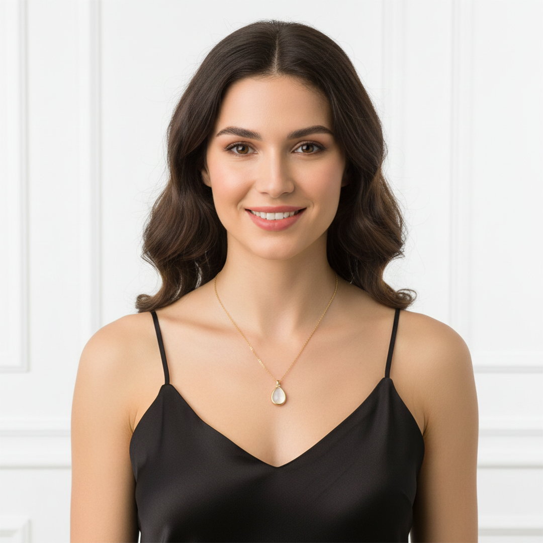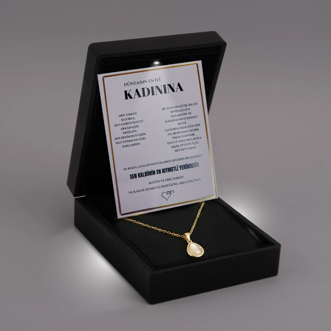 "Kadınına" Doğal Taşlı Damla Kolye Anlamlı Not ve Kutulu