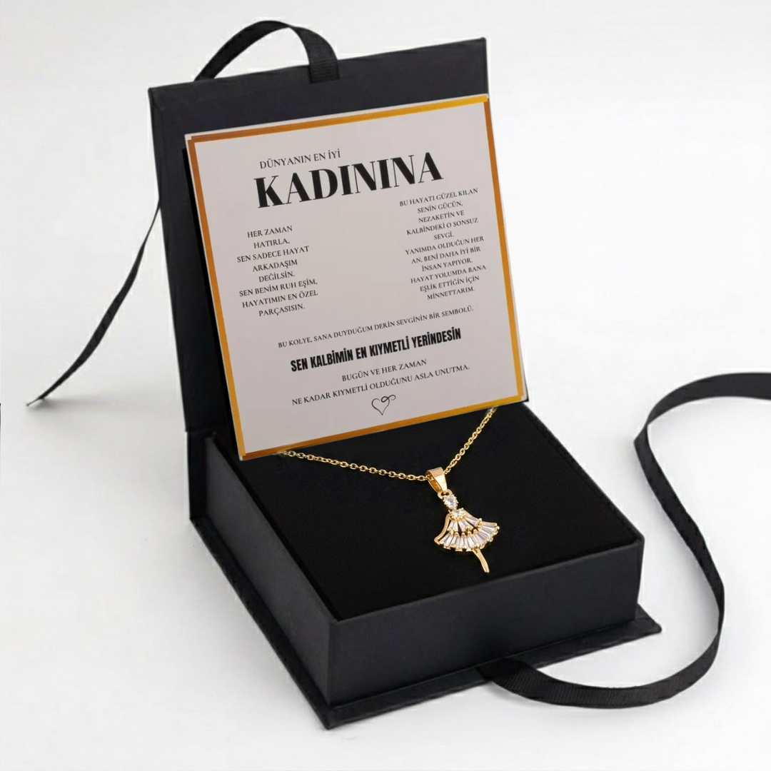 "Kadınına" elmas işlemeli balerin Kolye Anlamlı Not ve Kutulu