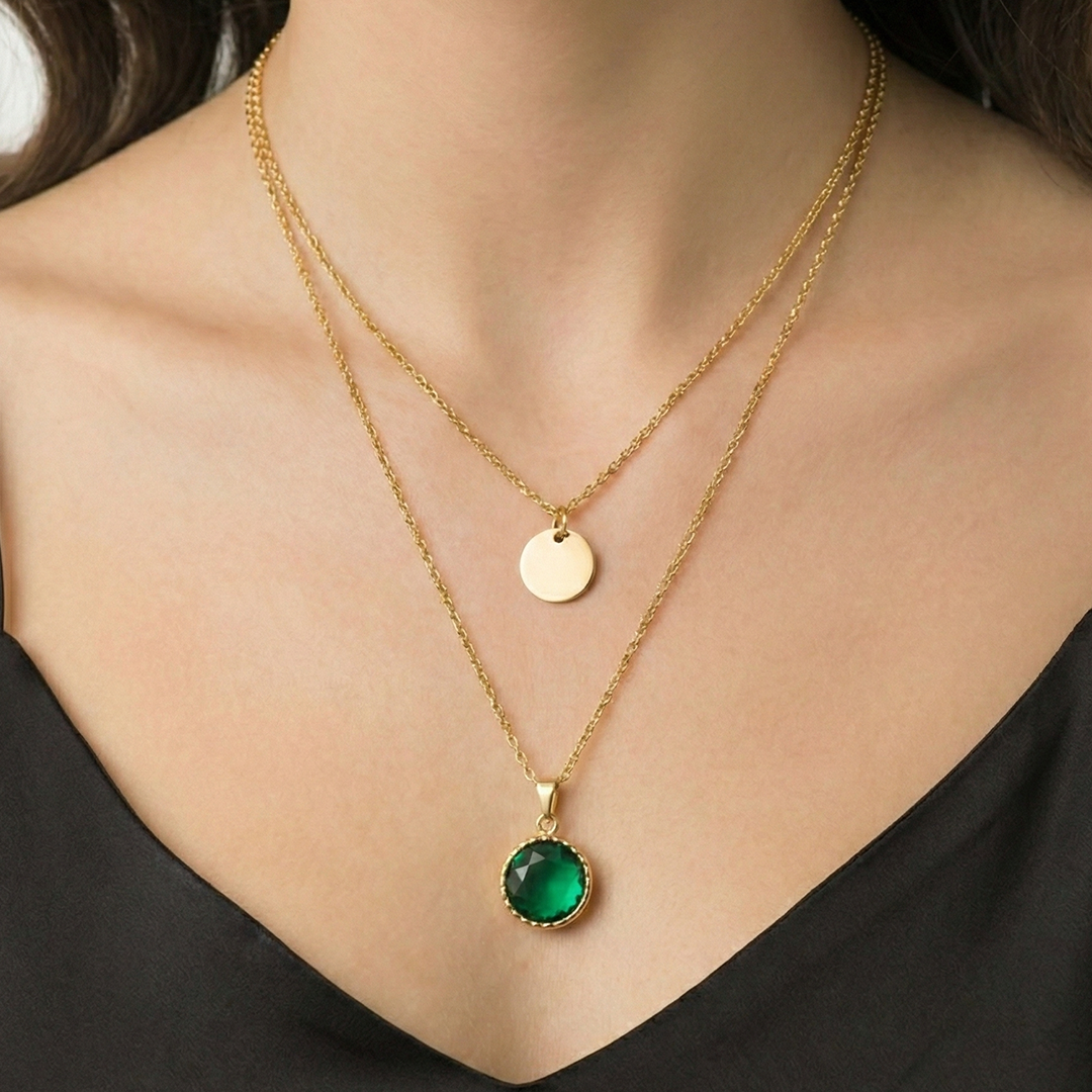 "Kadınına" Zümrüt Renk Damga Kolye Anlamlı Not ve Kutulu