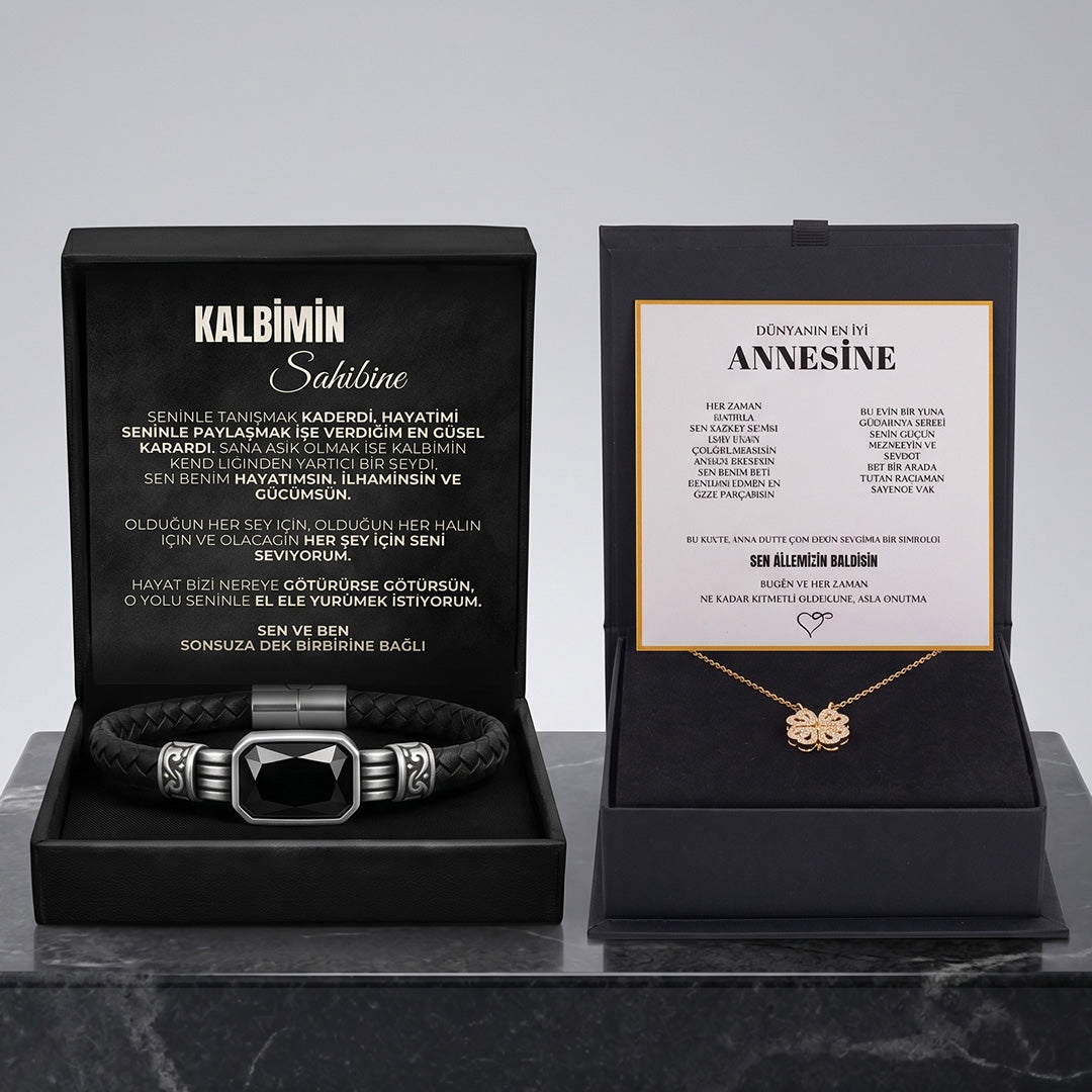 Her kargo kutusunda kolyenin yanı sıra, özel mesaj kartı, bakım önerileri, teşekkürler kartı ve anlamlı bir sunum yer alır.