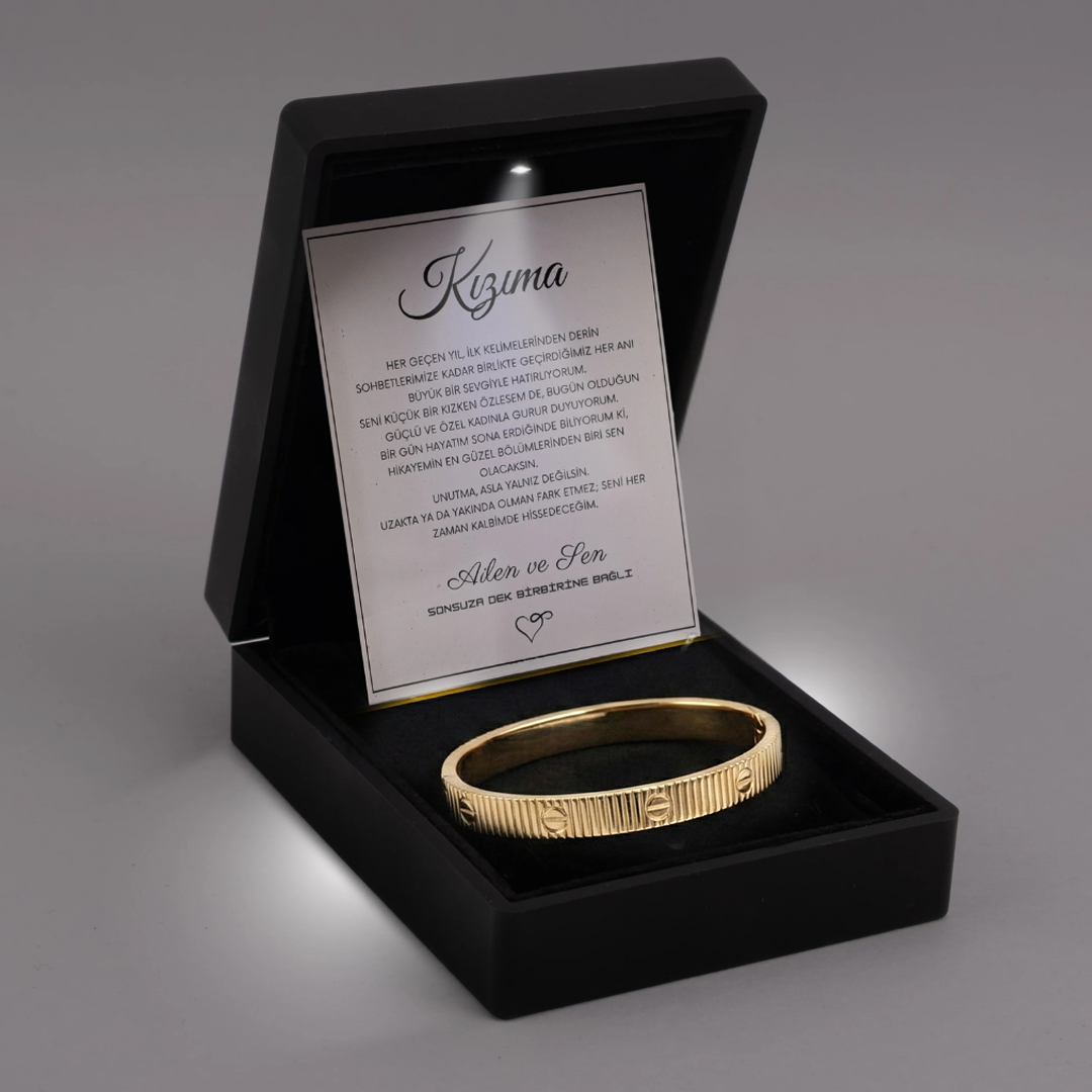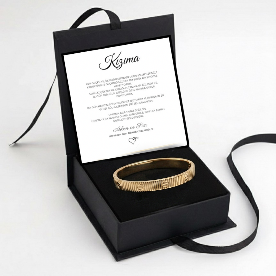 "Kızıma" Altın Dokunuş Bileziği Anlamlı Notlu Kutulu