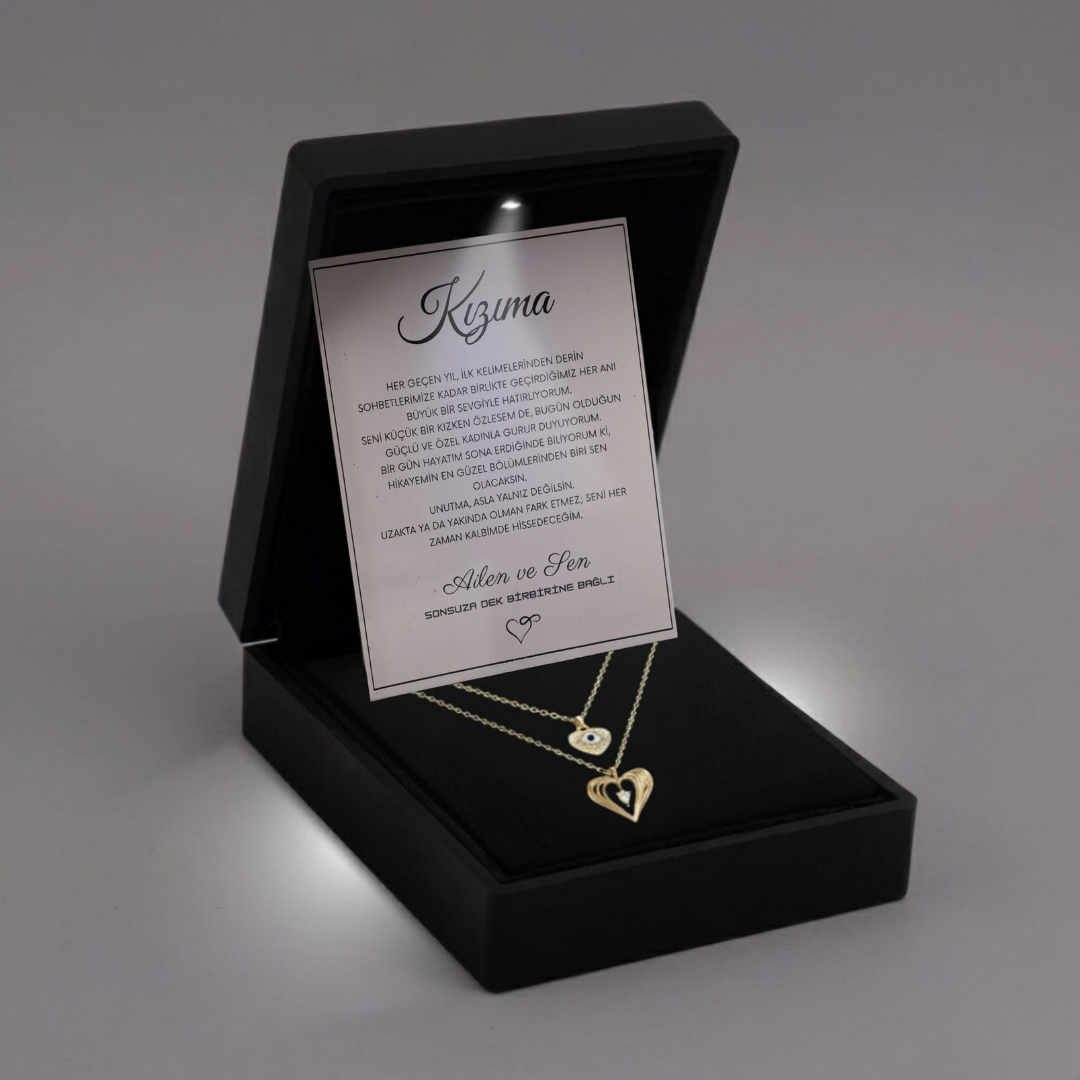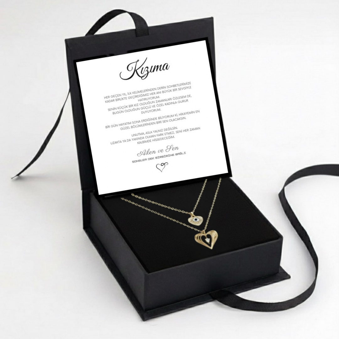 "Kızıma" Çift Kalp Kolye Anlamlı Not ve Kutulu