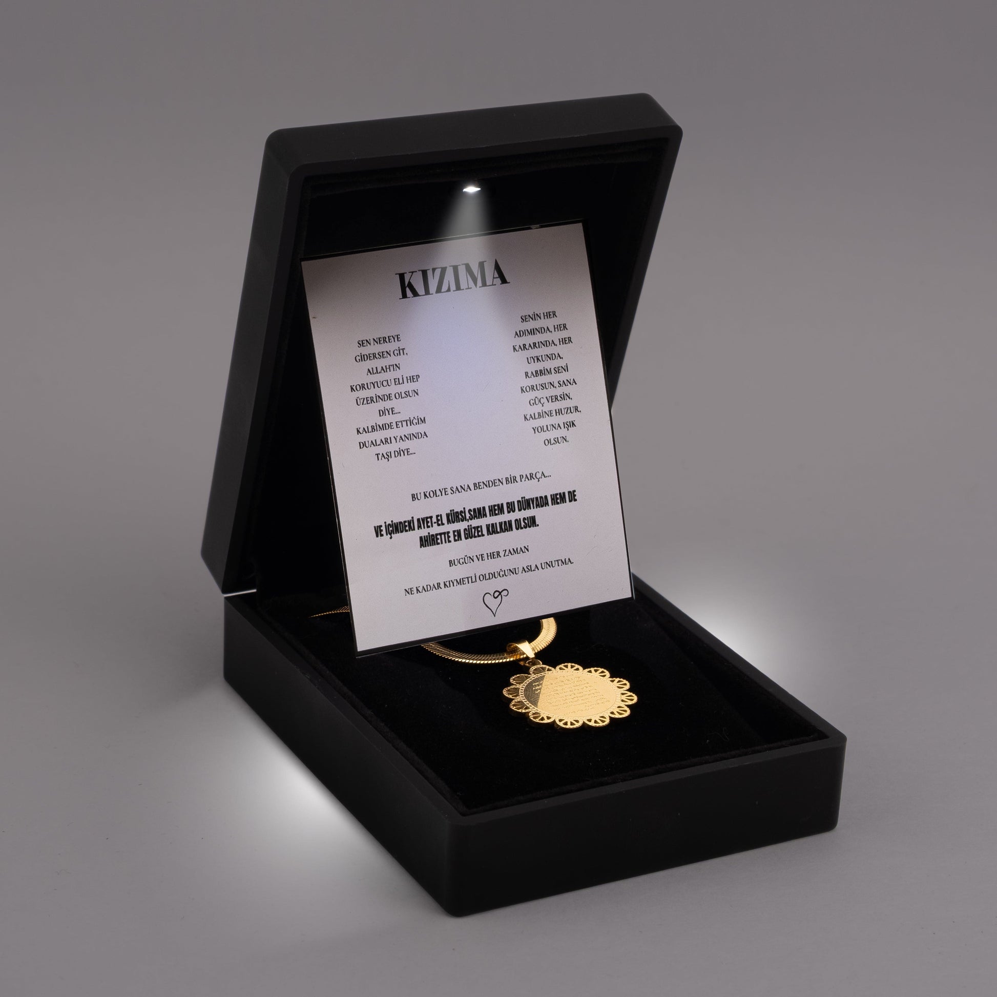 ''Kızıma'' Dua Kolye Ayetel Kursi Anlamlı Not ve Kutulu
