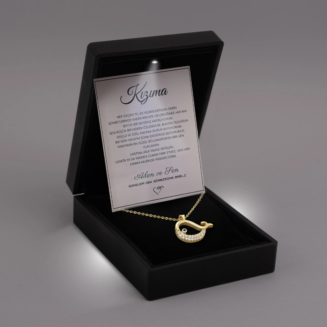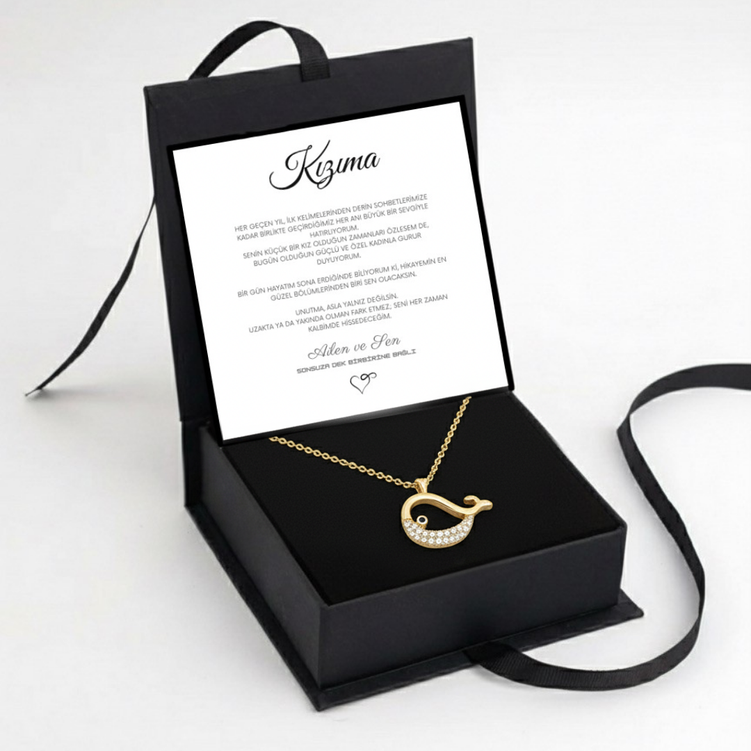 "Kızıma" Kristal Taşlı Balina Kolye Anlamlı Notlu Kutulu
