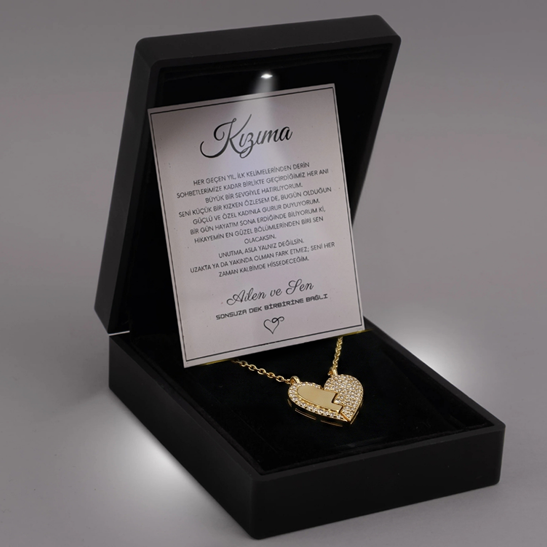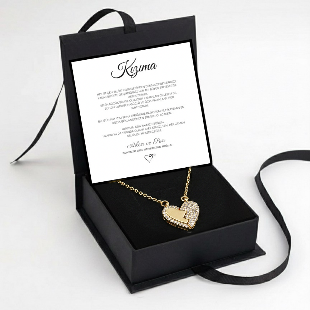 "Kızıma" Mıknatıslı Kalbim Sende Kolye Anlamlı Not ve Kutulu