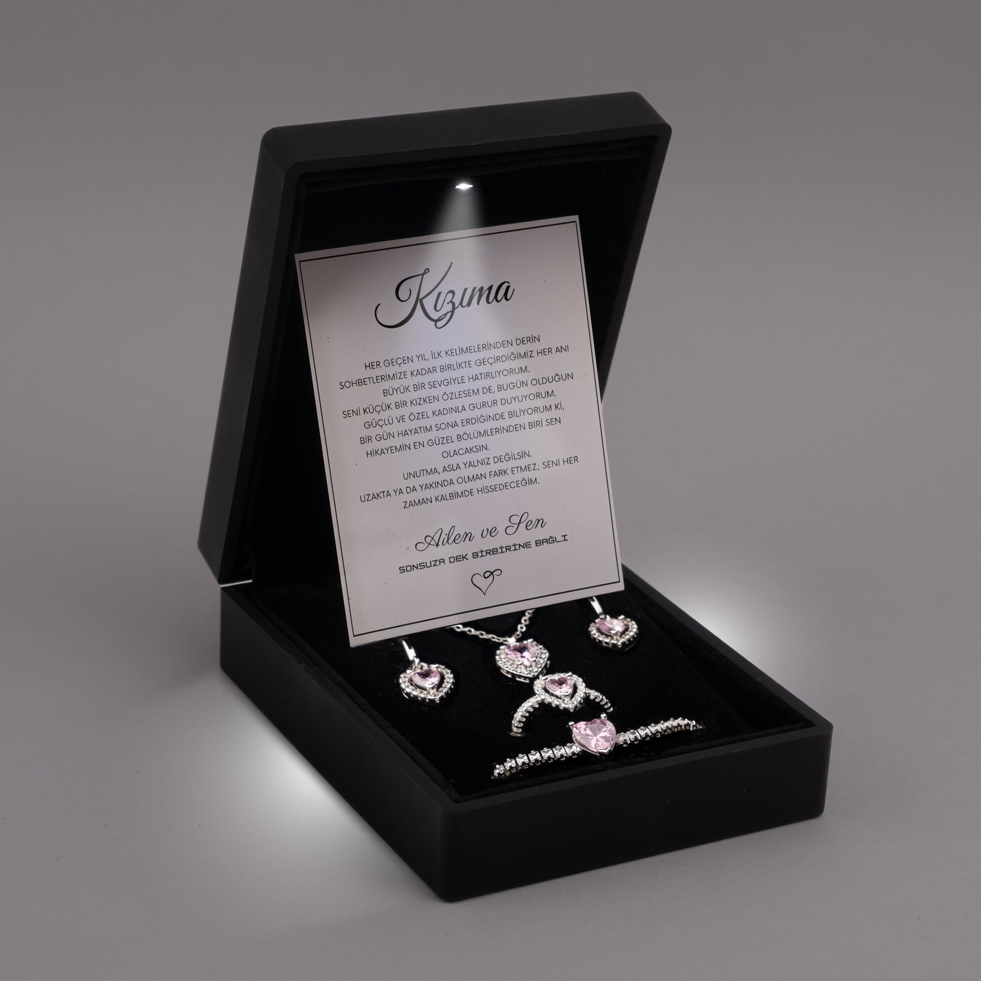 ''Kızıma'' Pembe Kalpli Pandora Hediye Seti