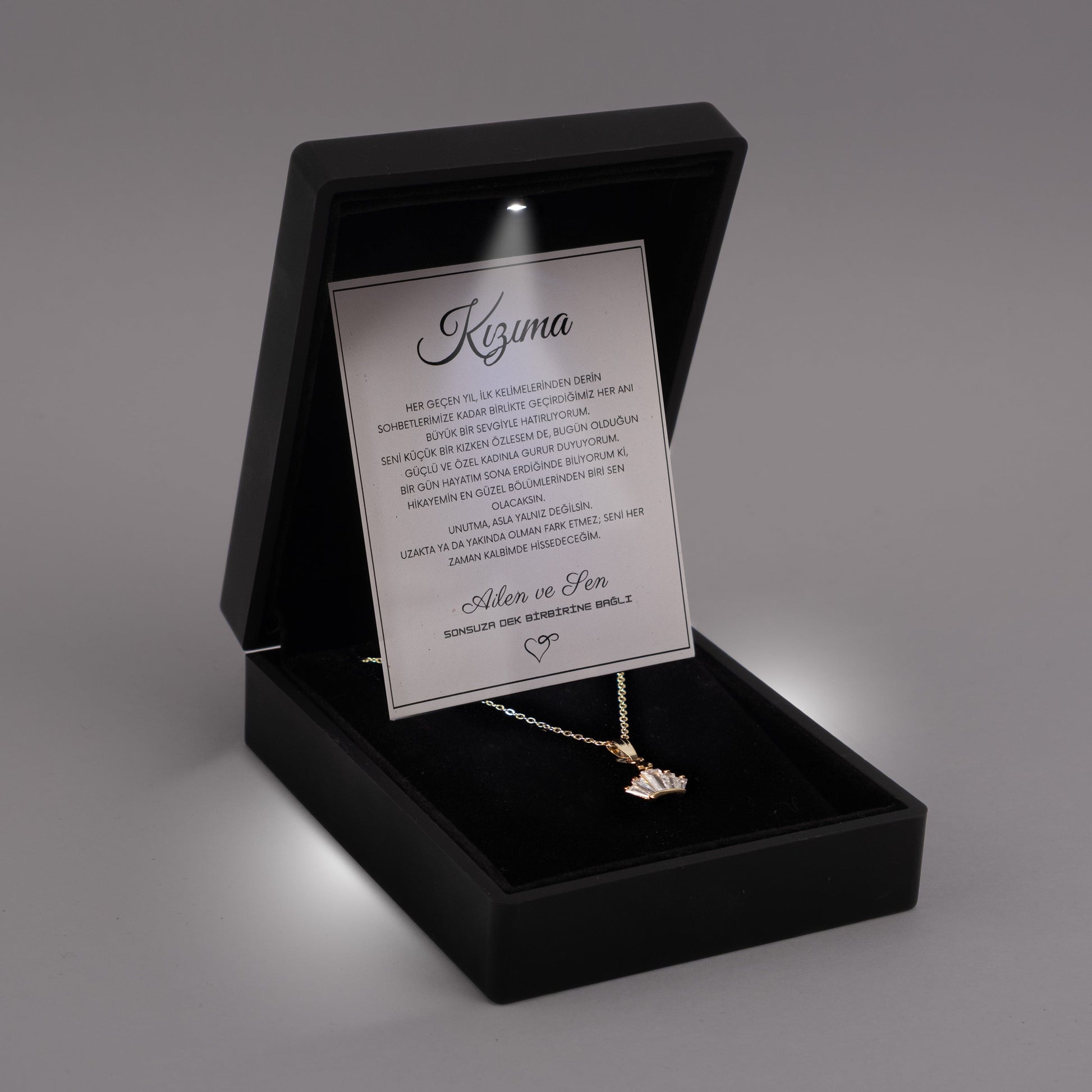 “Kızıma” Taç Model Işıltılı Kolye Anlamlı Notlu ve Kutulu