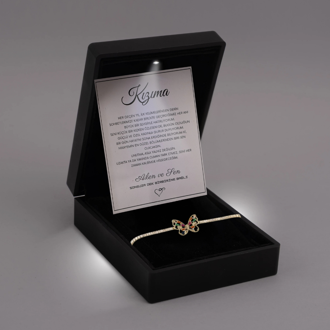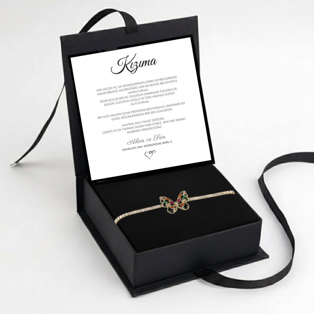 "Kızıma" Harmoni Kristal Taşlı Kelebek Bileklik Notlu ve Kutulu
