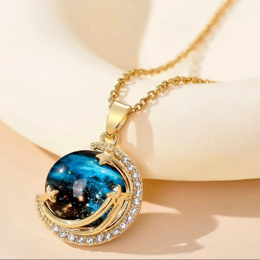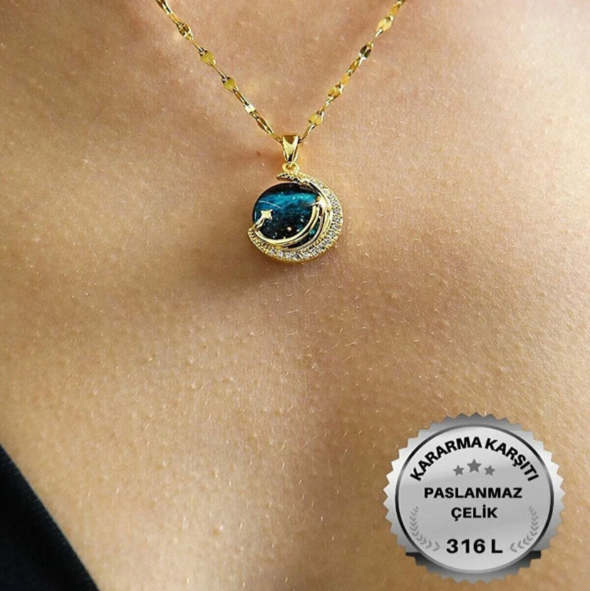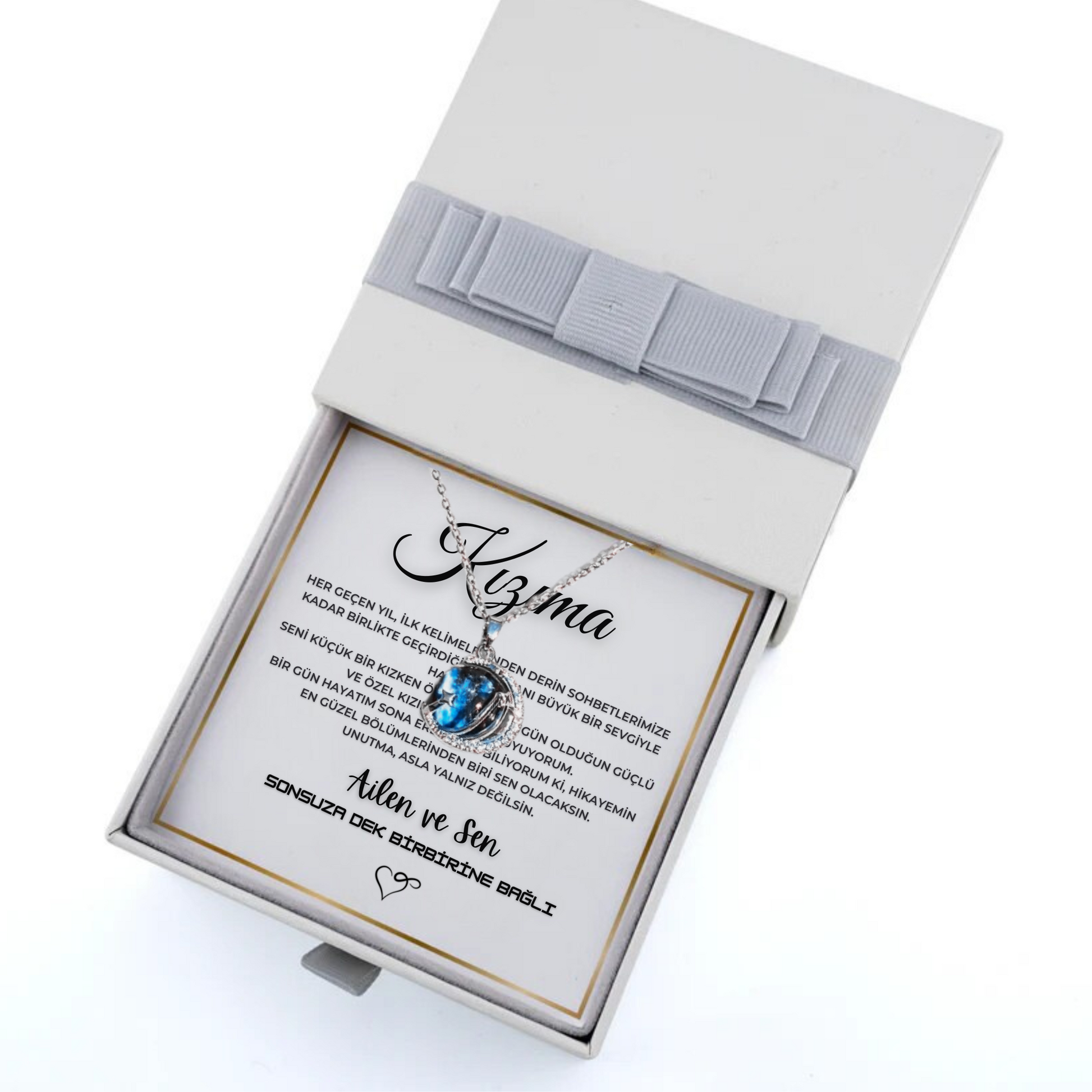 ''Kızıma'' Yıldızlı Gökyüzü Gezegen Kolye Notlu ve Kutulu