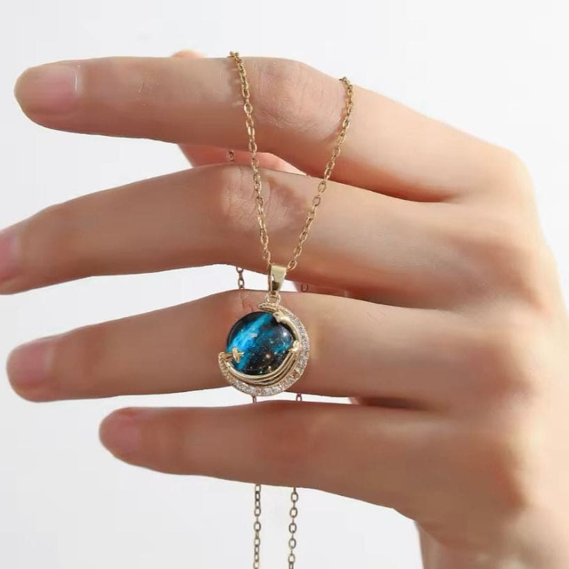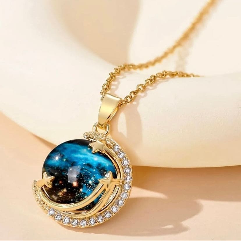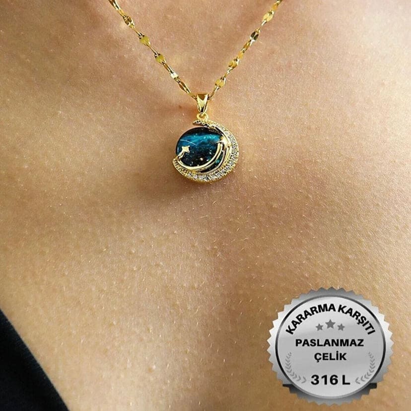 ''Kızıma'' Yıldızlı Gökyüzü Gezegen Kolye Anlamlı Not ve Kutulu