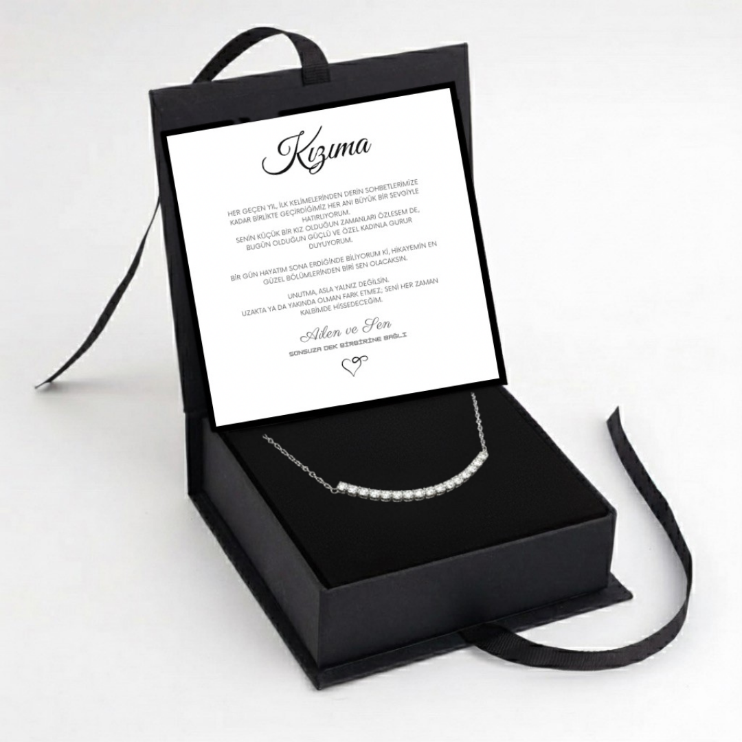 "Kızıma" Sıra Taşlı Kolye Anlamlı Not ve kutulu