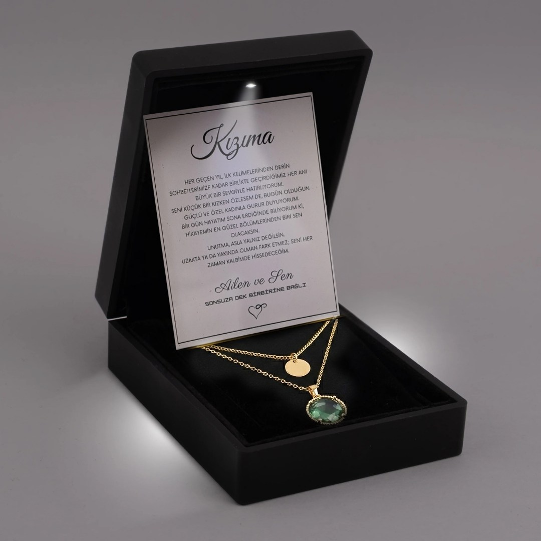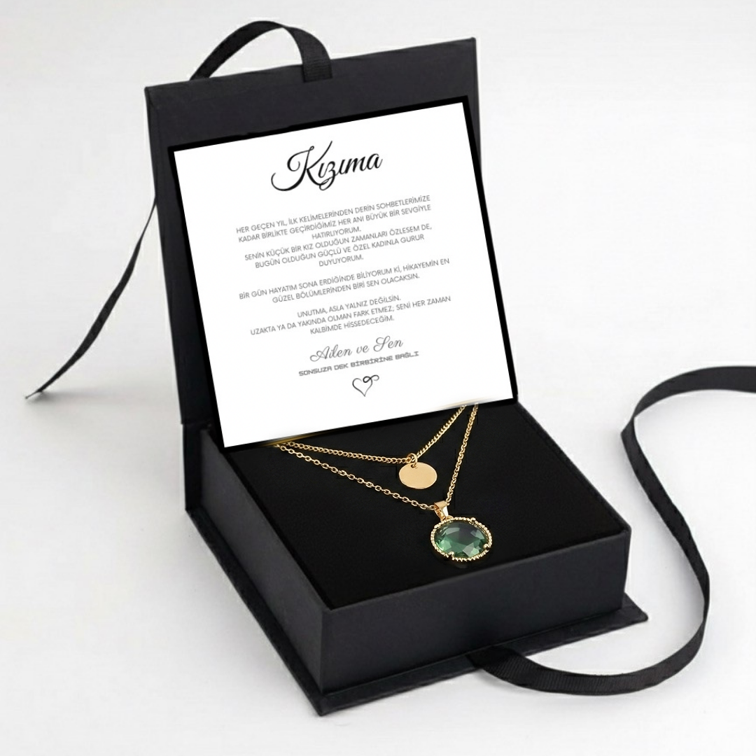 "Kızıma" Zümrüt Renk Damga Kolye Anlamlı Not ve Kutulu