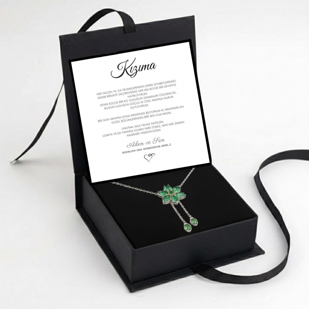 "Kızıma" Zümrüt Taşlı Bronş Kolye Notlu ve Kutulu
