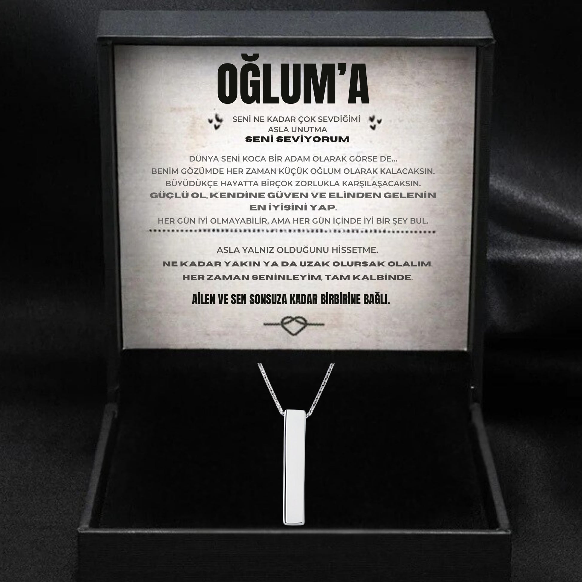 ''Oğluma'' Çubuk Kolye Notlu ve Hediye Kutulu