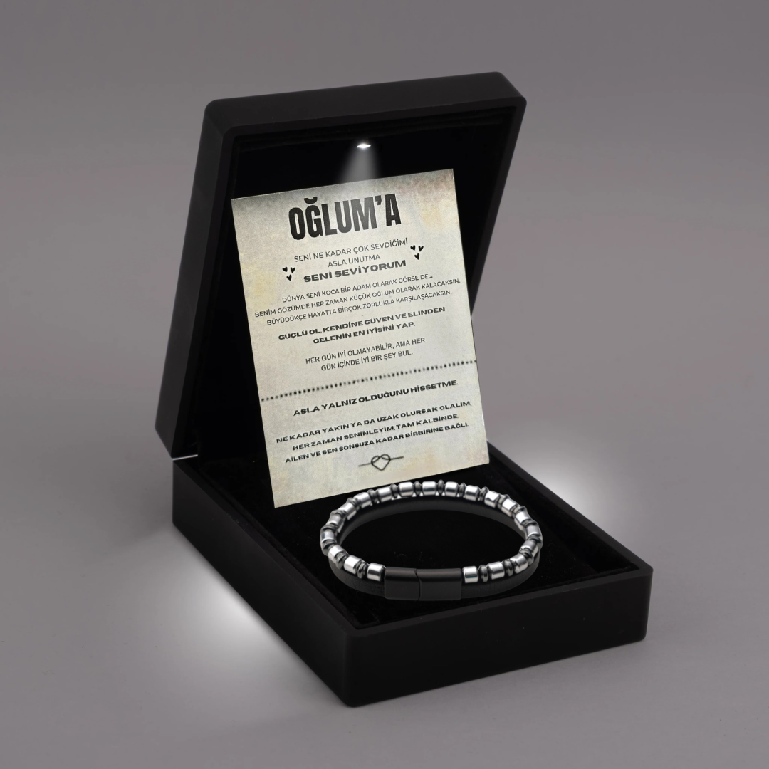 ''Oğluma Magneto Bileklik'' Notlu ve Hediye Kutulu
