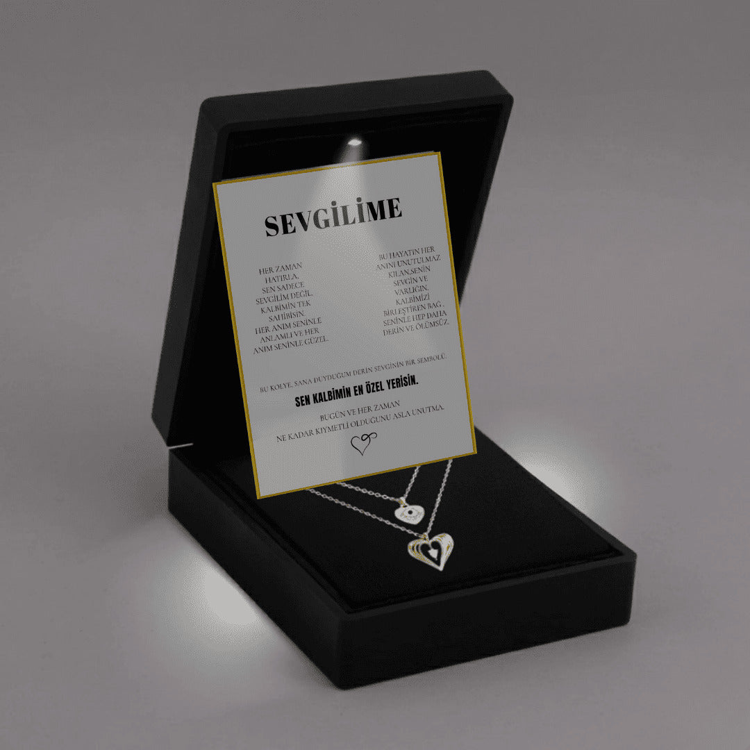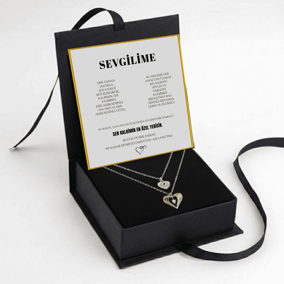 "Sevgilime" Çift Kalp Kolye Anlamlı Not ve Kutulu
