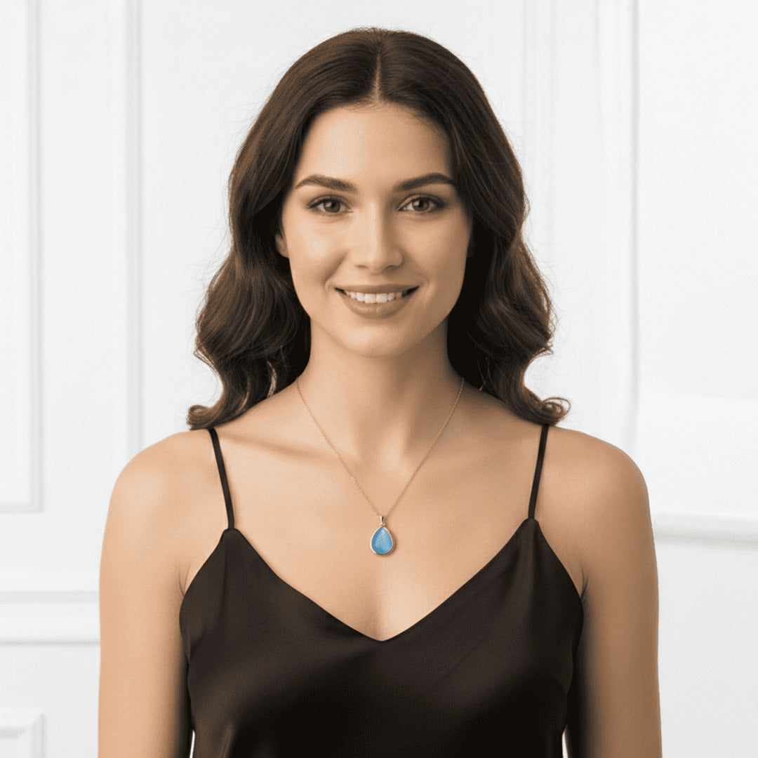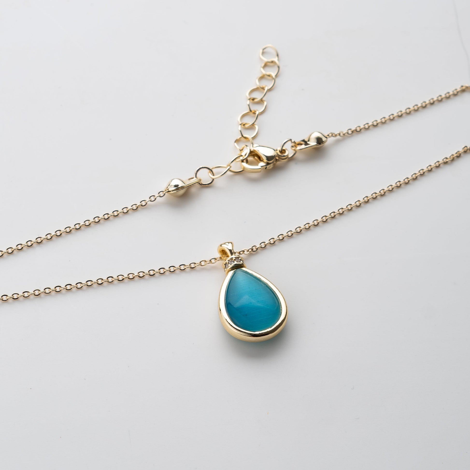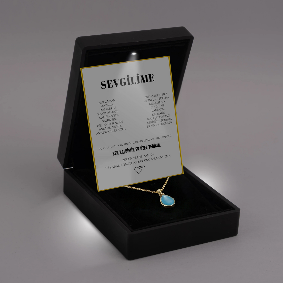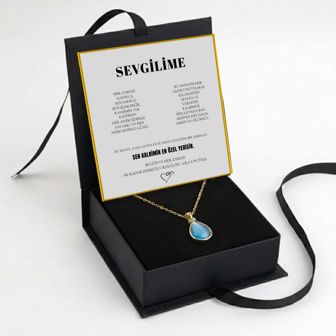 "Sevgilime" Deniz Mavisi Doğal Taşlı Damla Kolye Anlamlı Not ve Kutulu