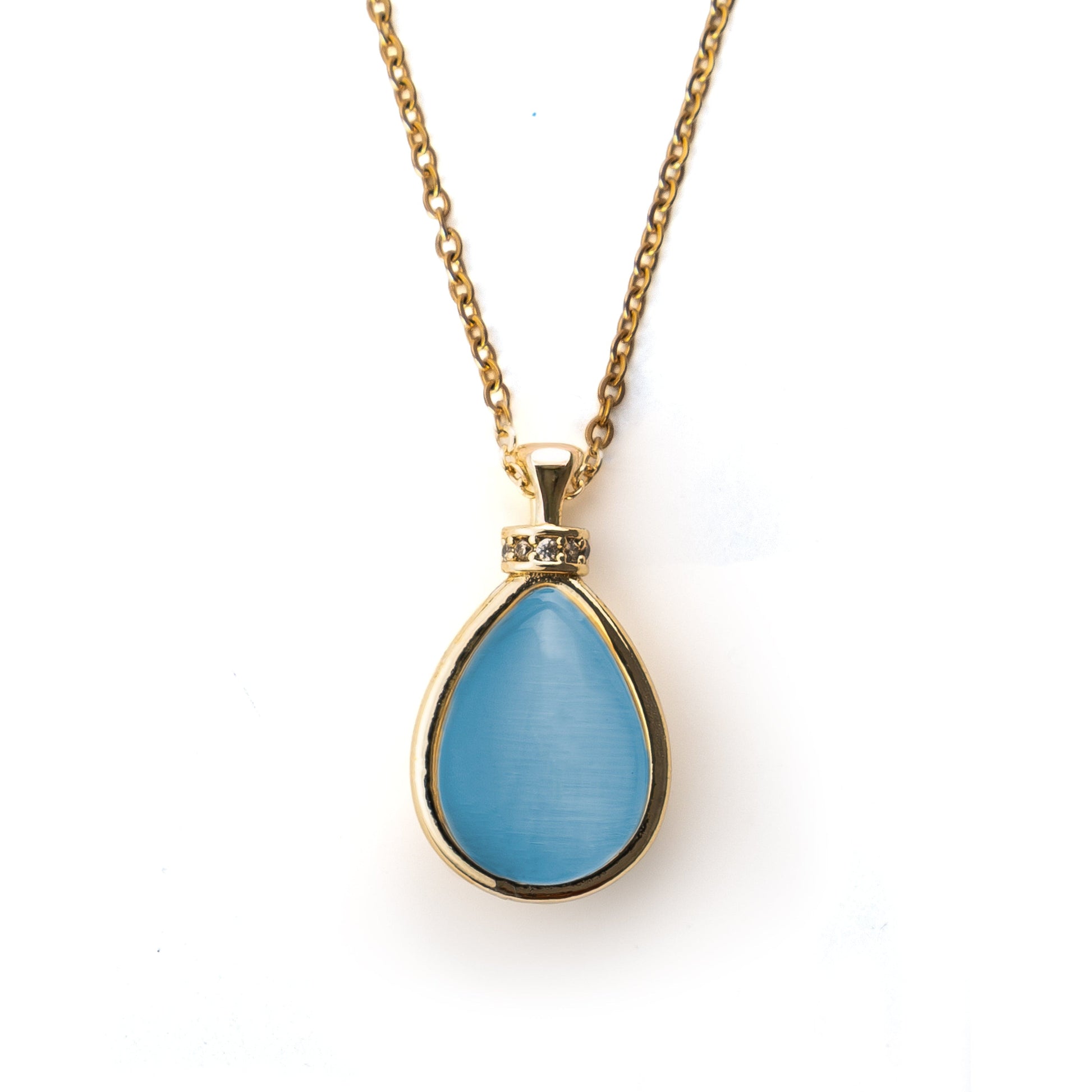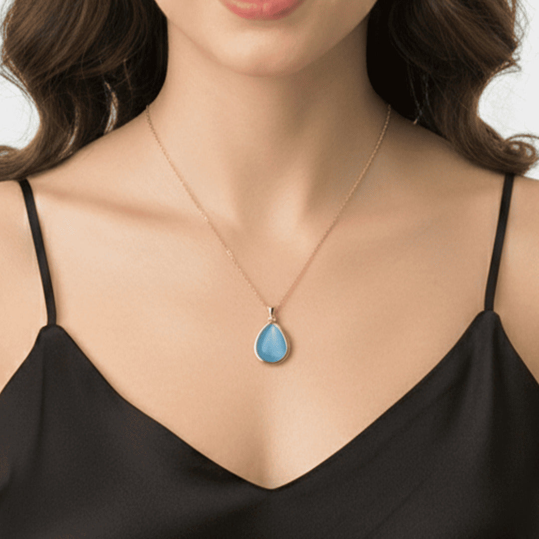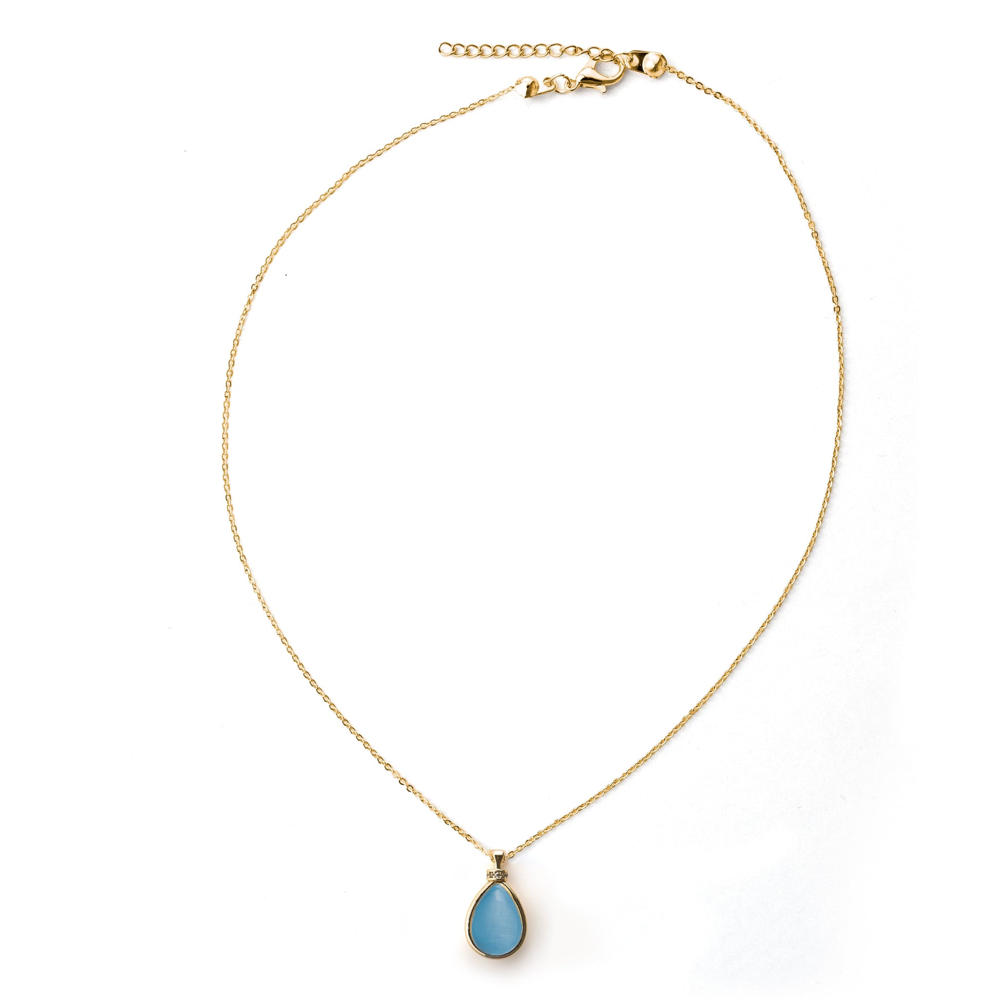 "Sevgilime" Deniz Mavisi Doğal Taşlı Damla Kolye Anlamlı Not ve Kutulu