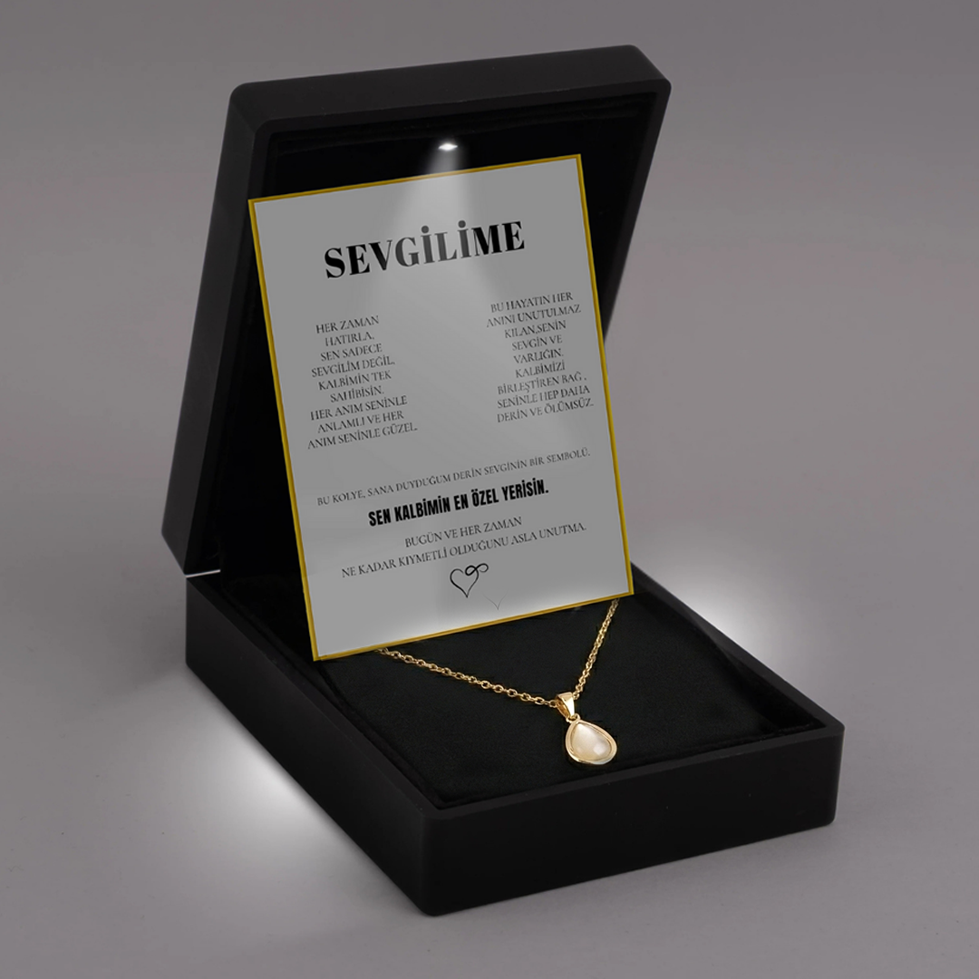 "Sevgilime" Doğal Taşlı Damla Kolye Anlamlı Not ve Kutulu