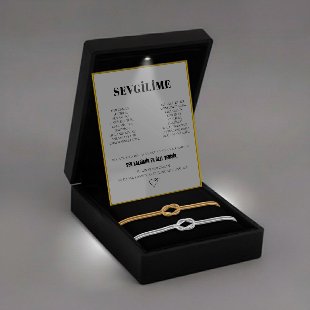 "Sevgilime" İkili Çift Düğüm Bileklik Anlamlı Not ve Kutulu