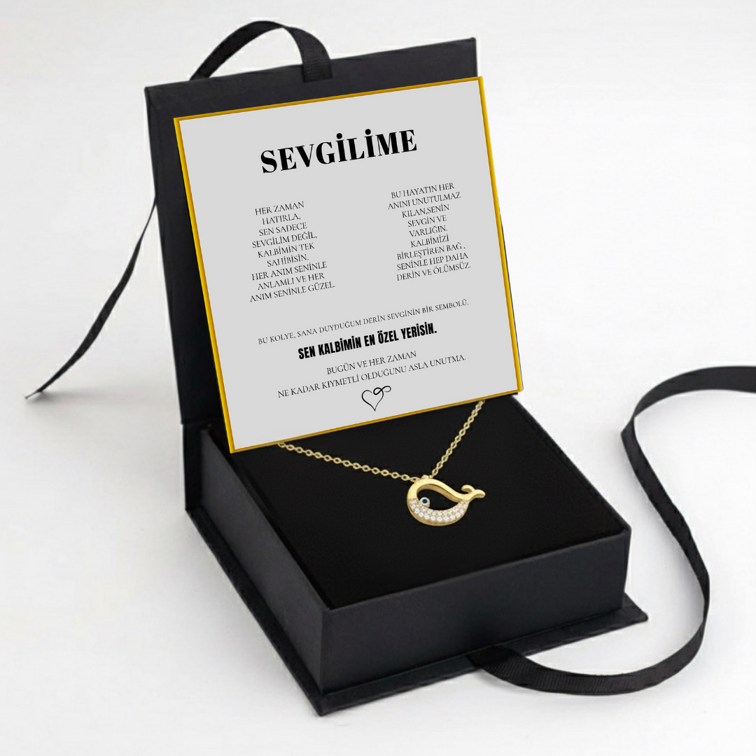 "Sevgilime" Kristal Taşlı Balina Kolye Anlamlı Notlu Kutulu