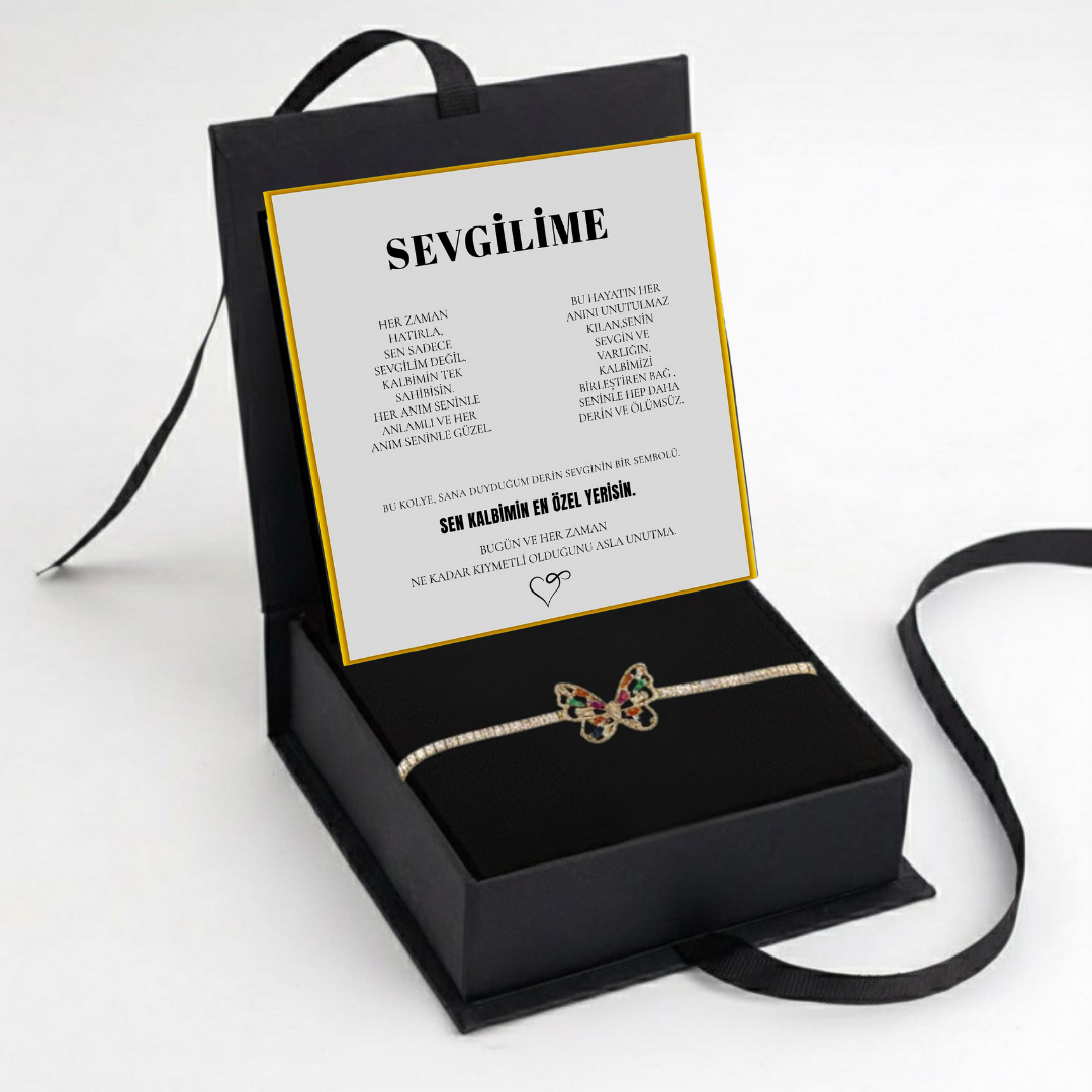 "Sevgilime" Harmoni Kristal Taşlı Kelebek Bileklik Notlu ve Kutulu